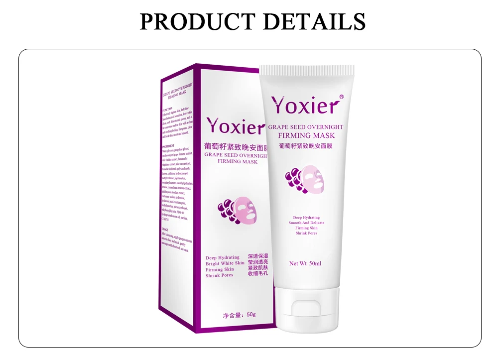 Маска для укрепления виноградных косточек на ночь Укрепляющая кожа/выцветание тонких линий/очистка кожи от грязи/Баланс жирности секреции Делает кожу чистой, мягкой, деликатной и глянцевой, и в то же время Дает коже ясное и успокаивающее ощущение, тщательные поры, кожа чистая и свежая, влажная и гладкая. Содержание нетто: 50 мл Количество: 10 шт. Детали подарка Грунтовка вишневого цвета Увлажняющий Макияж тщательный Усадочные поры