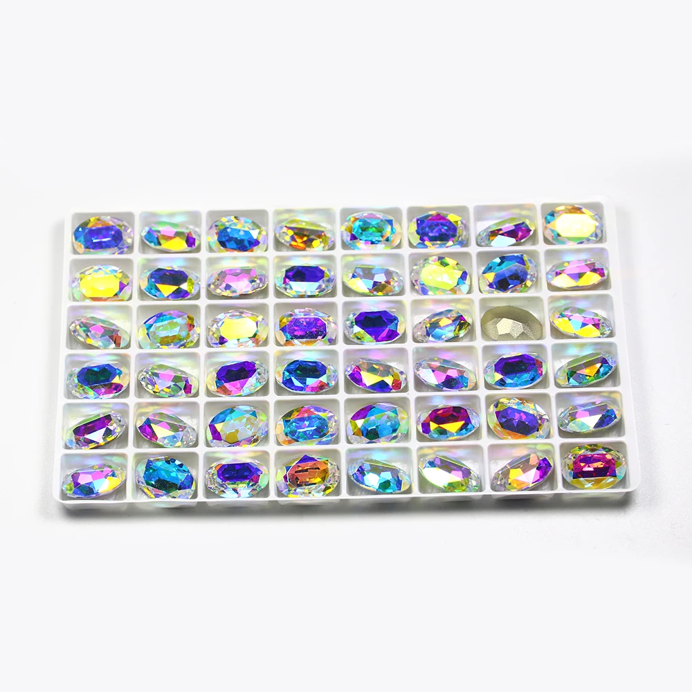 Овальные Стеклянные хрустальные стразы, блестящие стразы для дизайна ногтей, стразы с аппликацией, кристаллы с острым носком, камни для ногтей, рукоделие