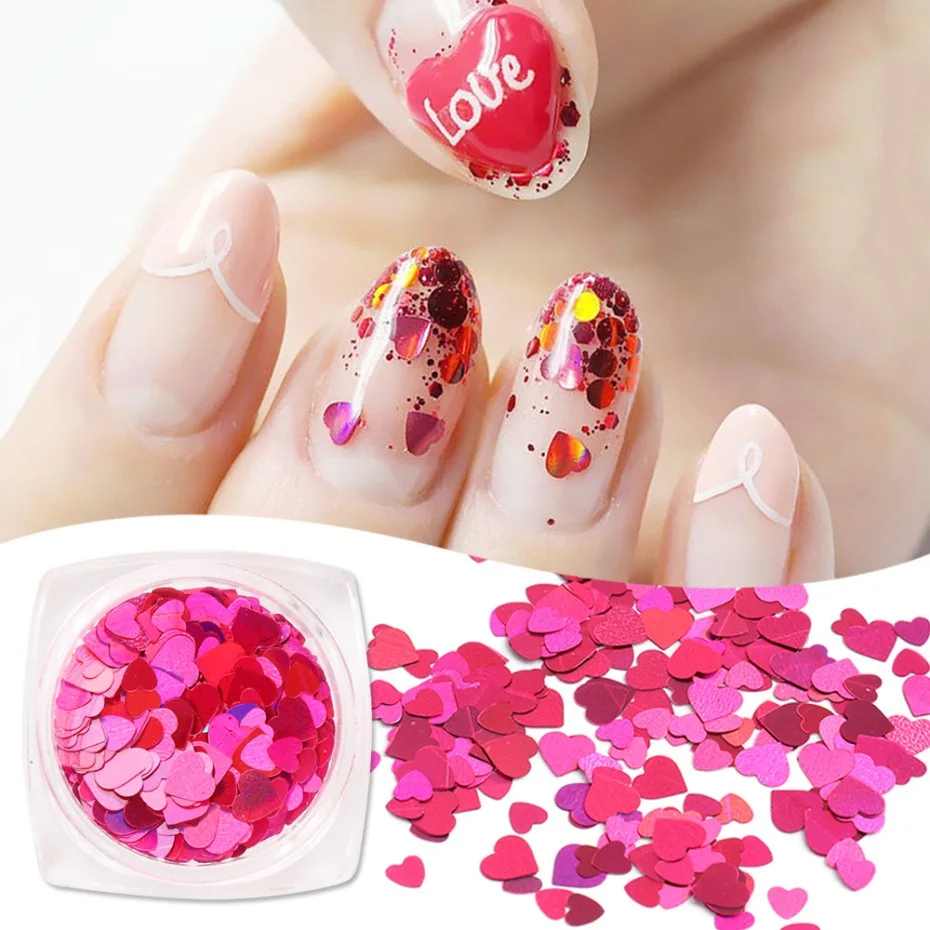 Смешанные сердца ногтей Блестки Красный Розовый голографический 3D хлопья блестки ломтики Маникюр Стикер украшения для ногтей