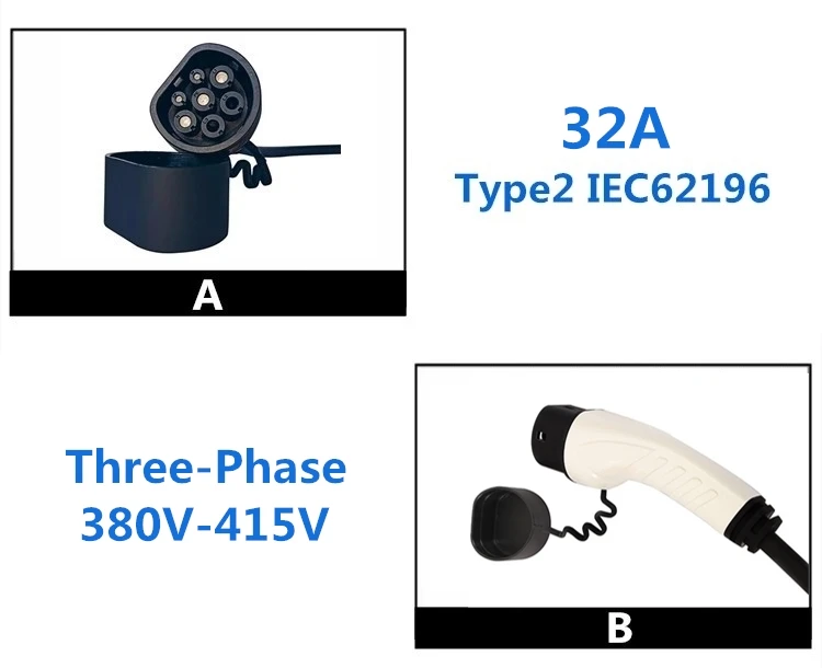 Информация о продукте: • Модель: Тип 2 IEC62196-2 • Ток зарядки: 32A • Входное напряжение: трехфазный 380-415 В • Рабочая температура: -30 °C ~ + 50 °C