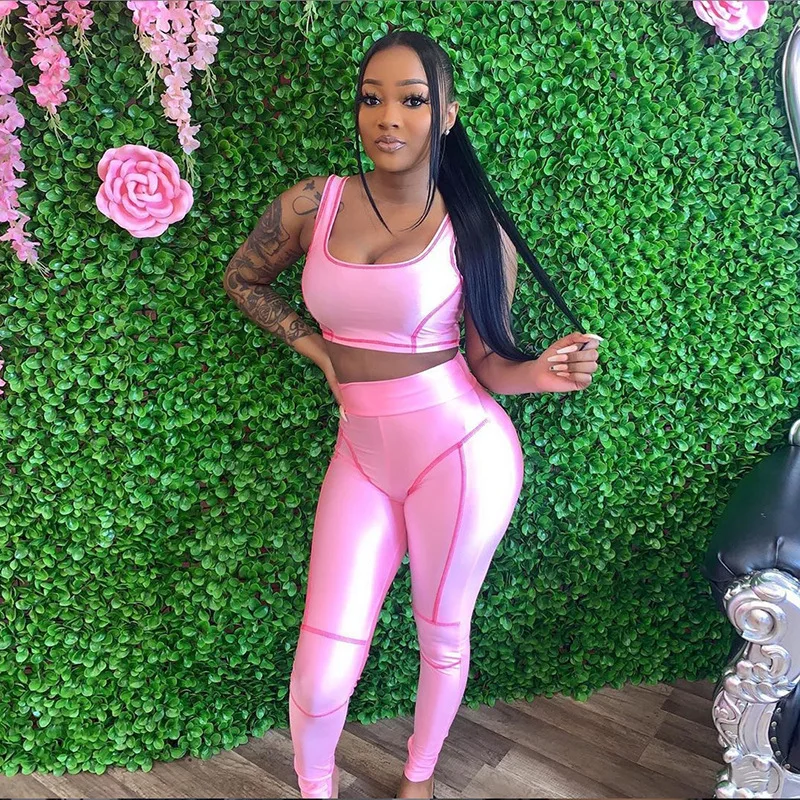 Неоновый розовый сексуальный топ Camisoles, бюстгальтер, штаны, леггинсы, комплект из двух предметов, спортивный костюм для фитнеса, женская уличная одежда, игровой костюм, спортивная одежда