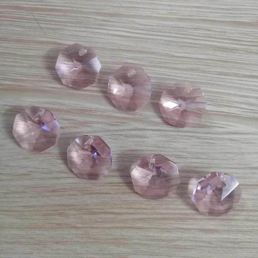 Camal 20 шт (одно отверстие) розовый 14 мм Хрустальный восьмиугольный бисер призмы люстра части лампы свадьба центральный висячий DIY