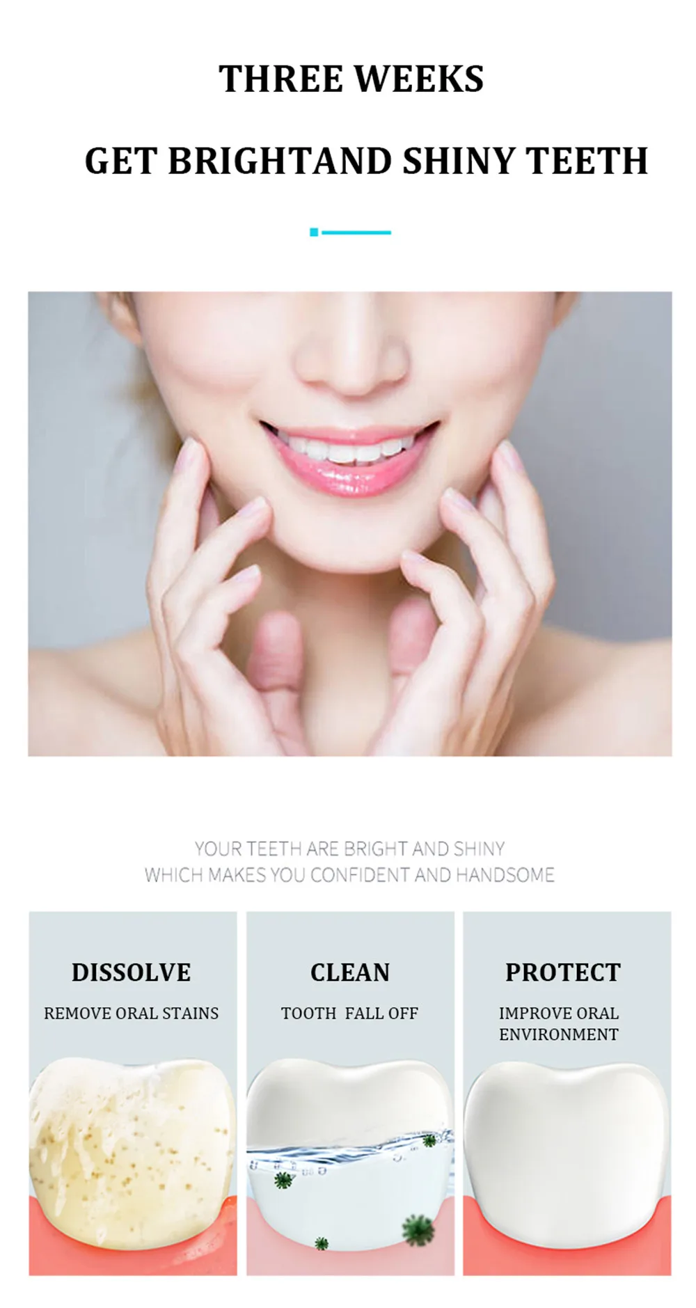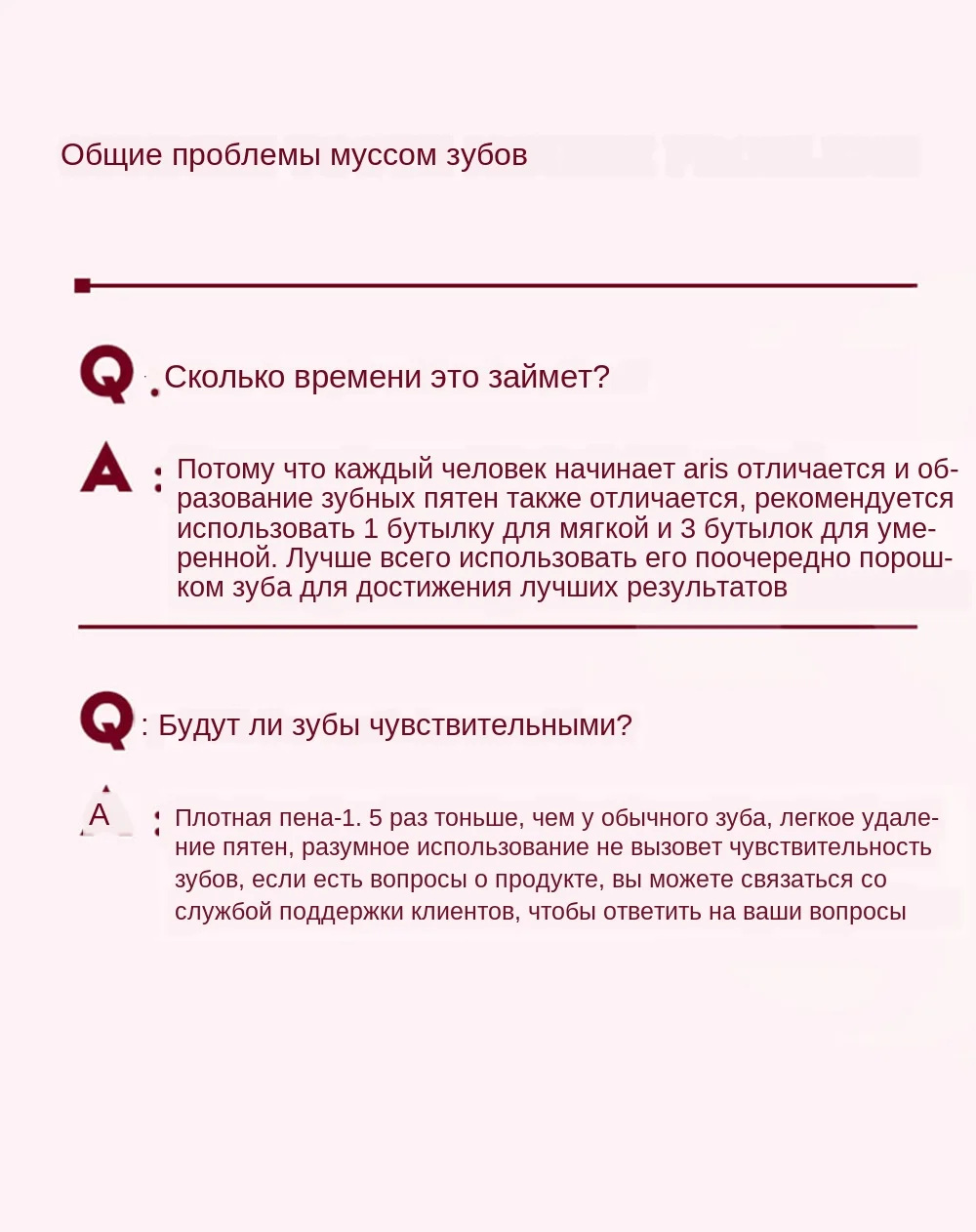 1. Пожалуйста, проверьте его на руке, прежде чем использовать его для отбеливания зубов. Если есть какой-либо дискомфорт, пожалуйста, прекратите использовать его. 2. Если у вас есть очевидная ранка во рту или кровотечение, пожалуйста, прекратите использовать ее. 3. Не рекомендуется использовать в возрасте до 3 лет.
