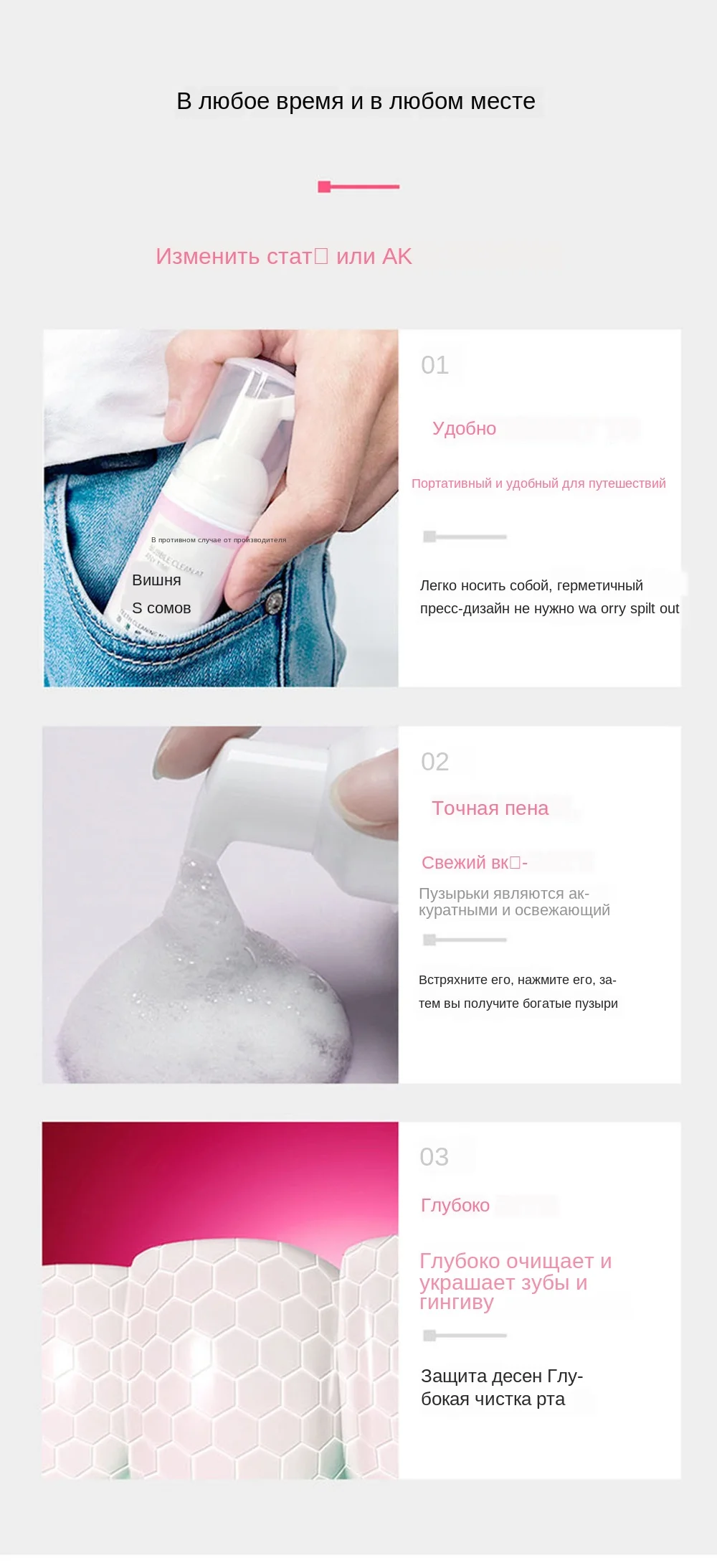 Удобен в использовании: поставляется с эргономичным дизайном пресса, удобен в использовании и не теряется, 60 мл Зубная паста пена, большая емкость для длительного использования. ✅✅Свежее дыхание: неприятный запах начинается с избыточного роста вашего языка в деснах, обеспечивает свежее дыхание и более здоровые десны! Битвы отступают десны и плохо дышат. ✅✅Сверхтонкая пена-Очистка пузырьков-натуральные ингредиенты, пригодные для отбеливания зубов и десенситизации зубов. ✅✅Более яркая и белая улыбка: долговечная более яркая и белая улыбка-удаляет пятна и отбеливает зубы, пока вы чистите. ✅✅Идеально подходит для автоматической электрической зубной щетки Anself, поместите жидкость в головку питания.