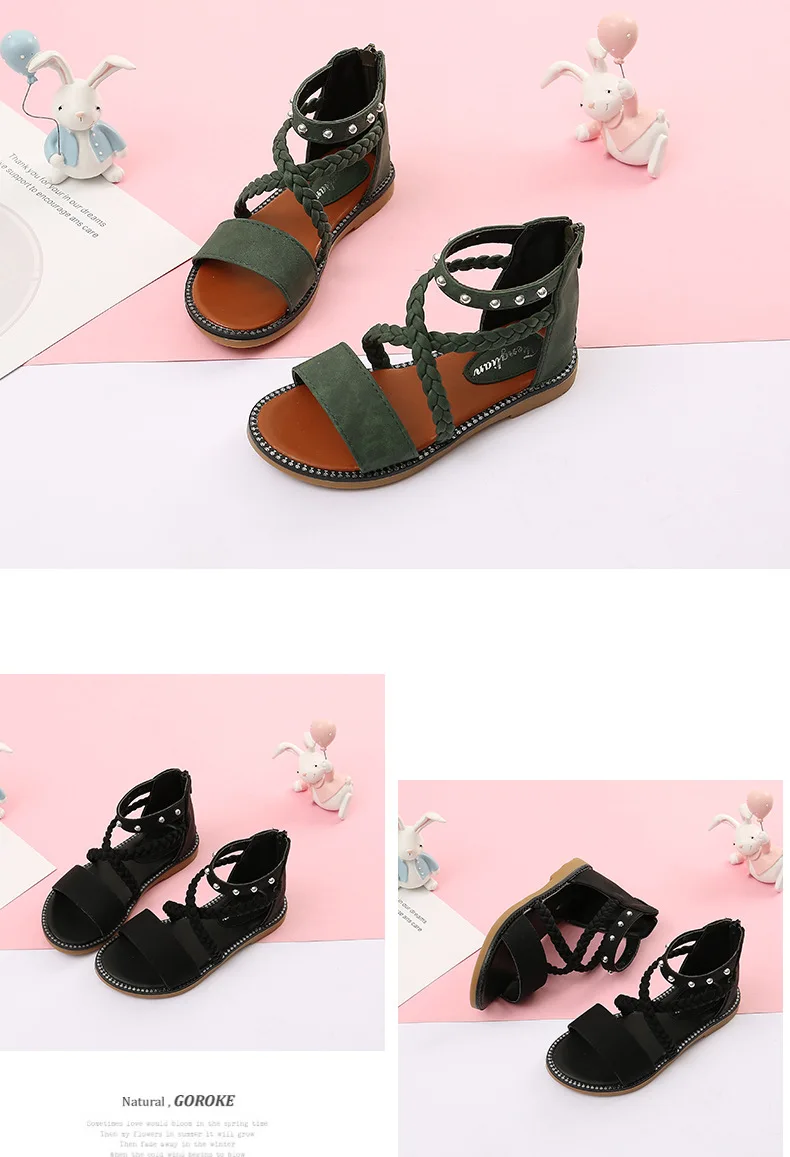 Туфли с открытым носком летние 2020 новые модные босоножки-гладиаторы; Платье принцессы; Обувь в школьном стиле; Пляжная обувь для девочек От 3 до 12 лет детская одежда