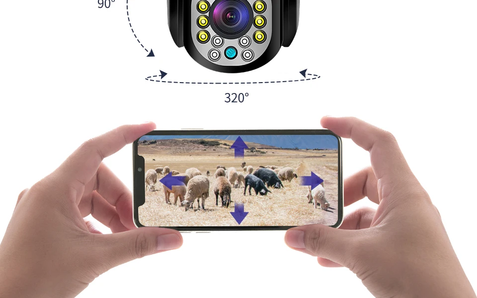 Горизонтальный угол обзора 320 °, вертикальный угол обзора 90 °, вы можете управлять им напрямую с помощью приложения Camhi в любое время и в любом месте.