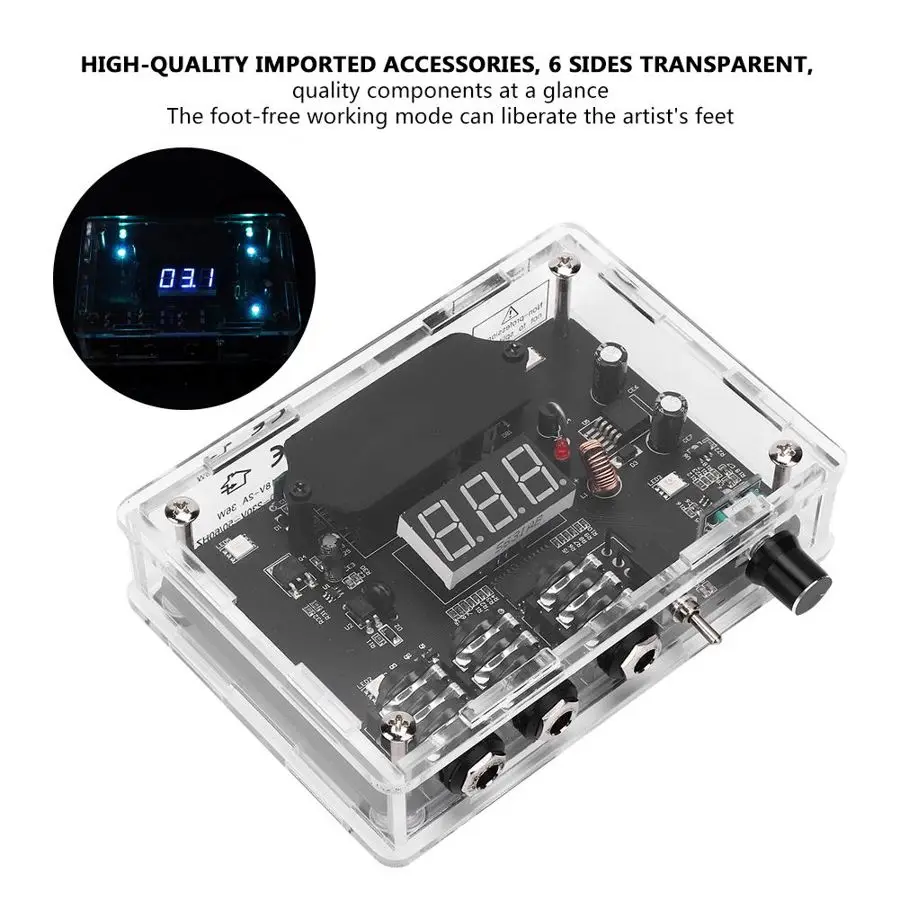 Прозрачный источник питания для тату, регулируемый цифровой источник питания для тату-машины, источник питания для боди-арта 100-230 В