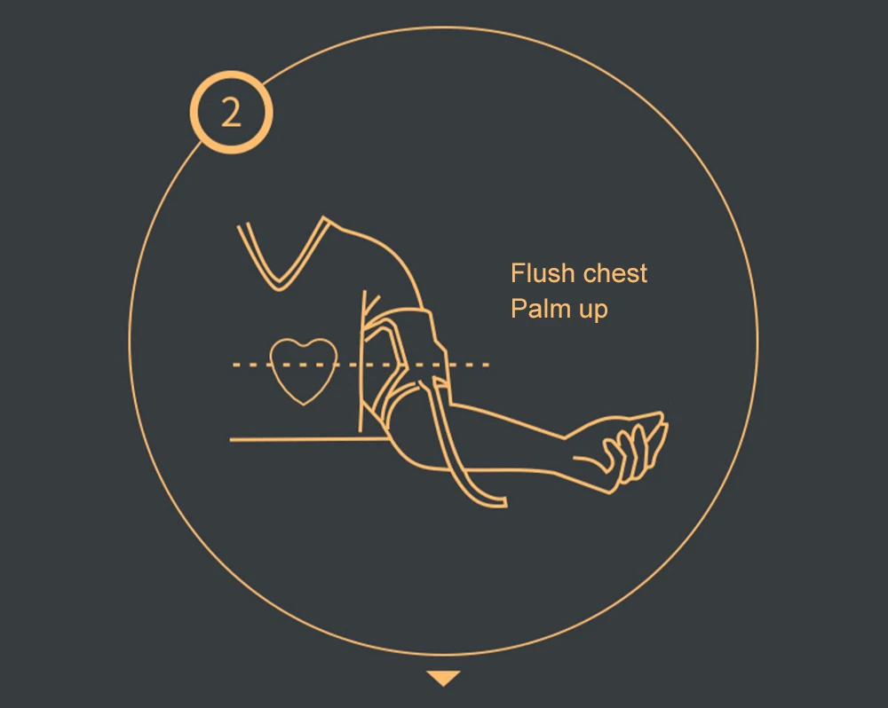 ● Пожалуйста, Наденьте браслет на измерительную руку (степень герметичности в качестве пальца при примерке), и пусть воздух коснется запястья. ● Около 2-3 см (примерно ширина пальца) Окружность руки Размер 23-33 см ● Убедитесь, что нижний край браслета находится примерно на 2-3 см от локтевого сустава, и пусть воздушный кран находится в руке внутри. ● Пожалуйста, сидите в течение 5 минут в тишине, как на фотографиях перед измерением ● Положите руку на стол плоско, вертикально, ладонями вверх ● Центр браслета должен быть с одинаковой высотой сердца ● Обратите внимание, что воздушная трубка браслета не может быть повернута или согнута ● Нажмите кнопку OP для измерения ● Не подходит для измерения после еды, физических упражнений и с душевным волнением.