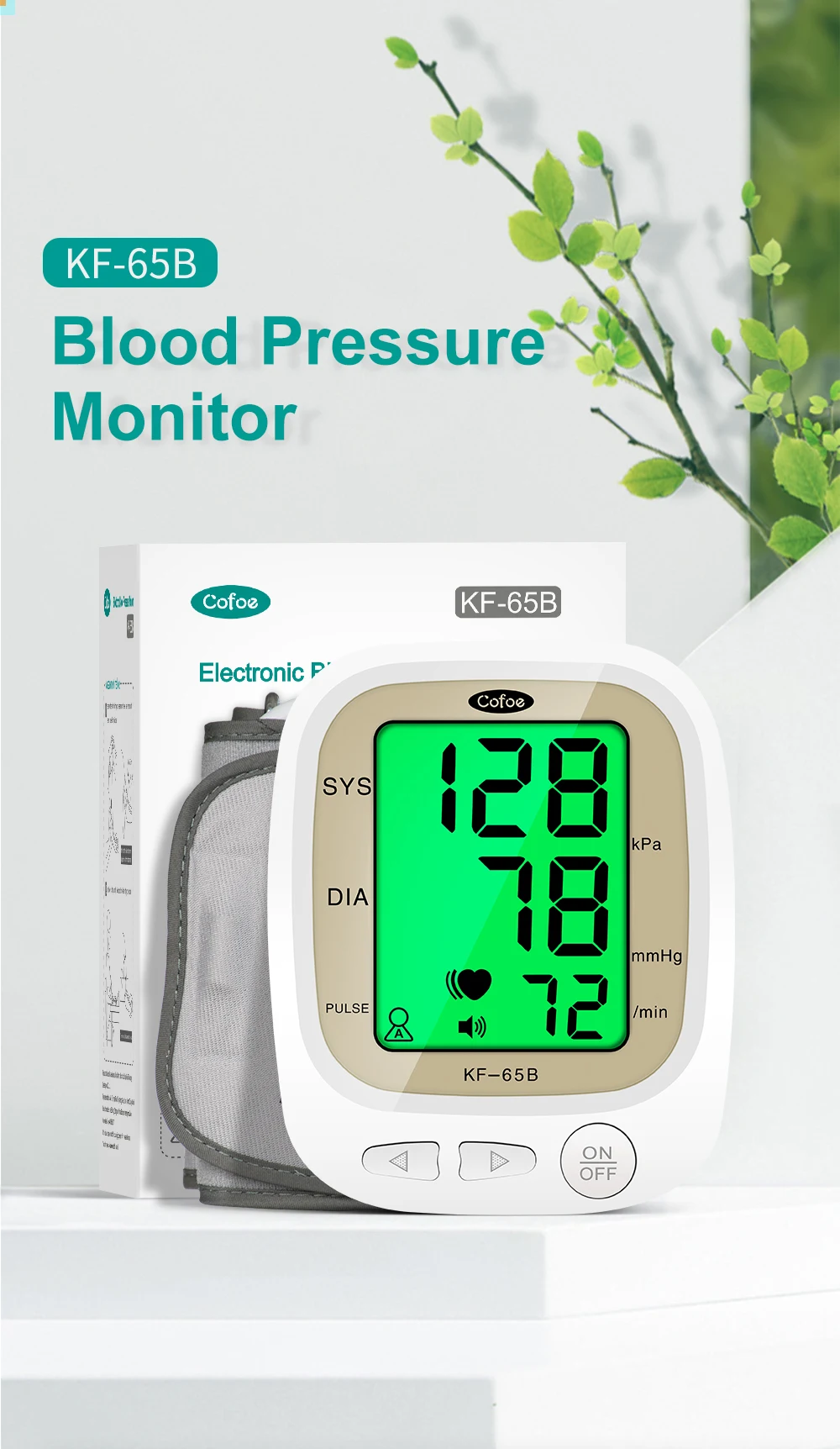 ① С голосовой передачей. ② 2x192 наборов данных для хранения ③ Большой ЖК-экран 3,7 дюйма показывает результаты измерений ④ Легкий и удобный для переноски ⑤ Низкий уровень шума, низкое энергопотребление и длительный срок службы ⑥ Автоматическое измерение Простота в использовании ⑦ Точность ± 3 мм рт. Ст. ± 0,4 кПа ⑧ Четырехслойная упаковка для предотвращения повреждений