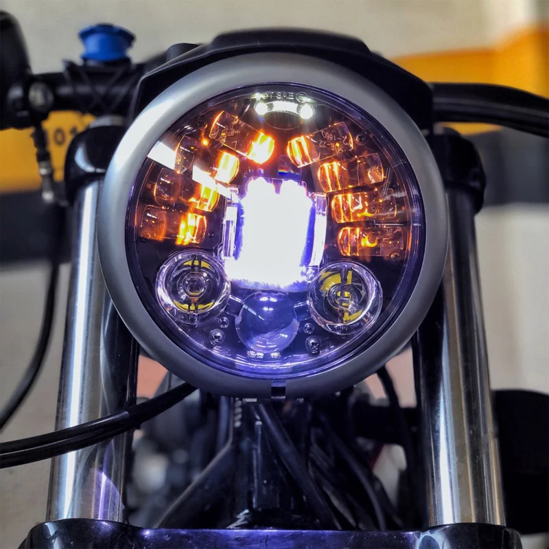 5,75 ''светодиодный светильник для мотоцикла, Белый DRL Янтарный сигнальный светильник для Honda dio Cafe Racer Sportster Street Bob