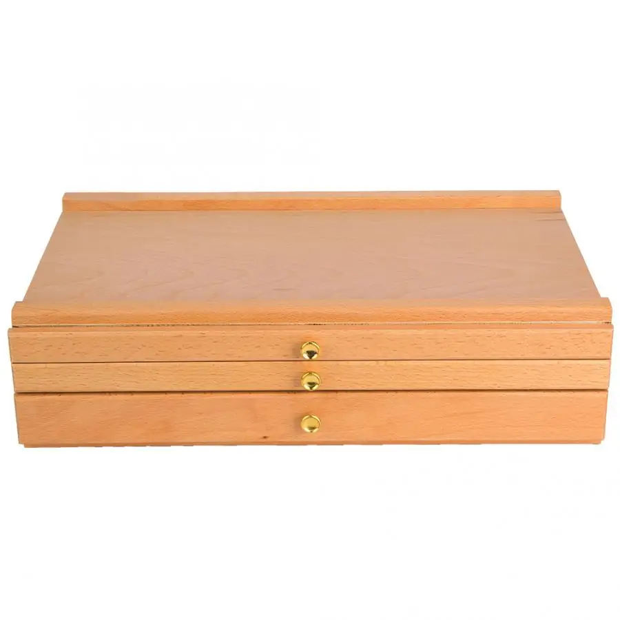 3 Слои ящика шкафа Ручка Рисунок инструмент пигмент аксессуары для рисования ящик для инструментов буковая древесина