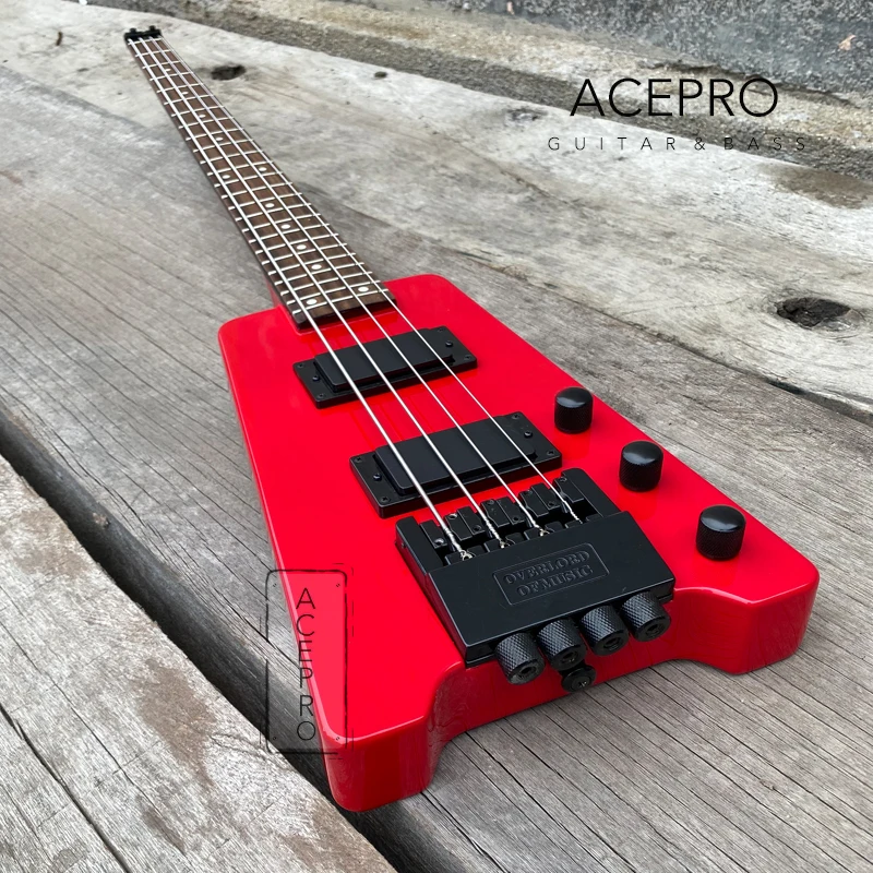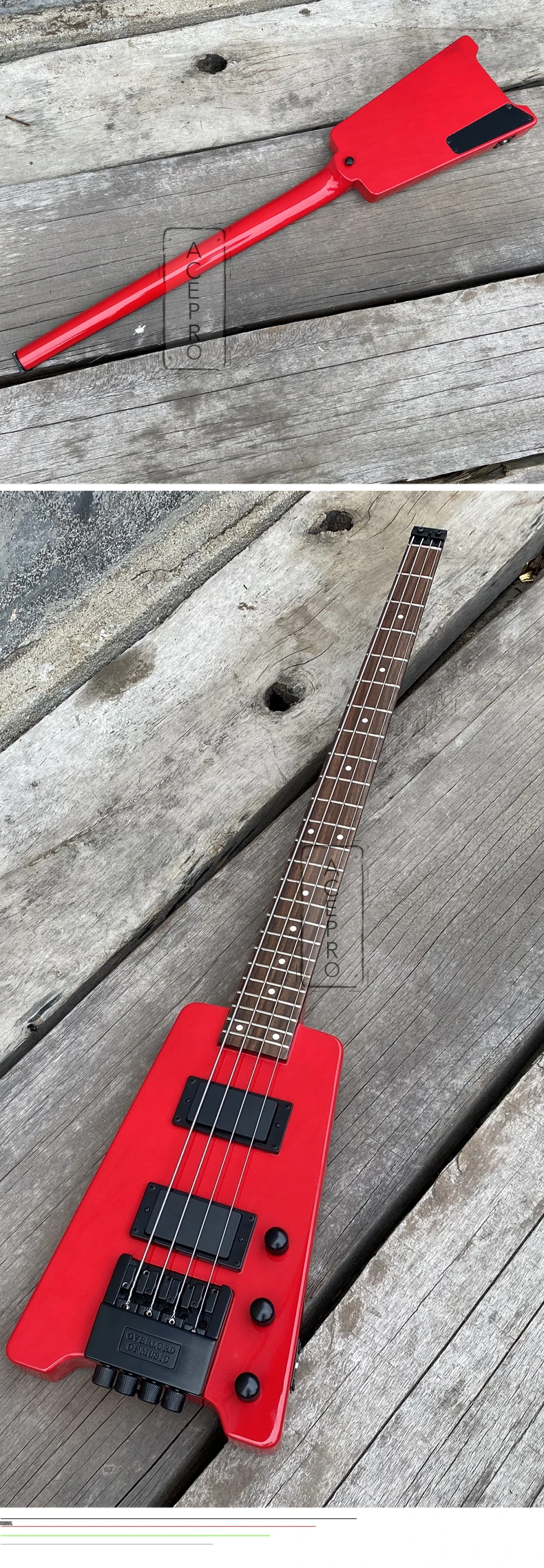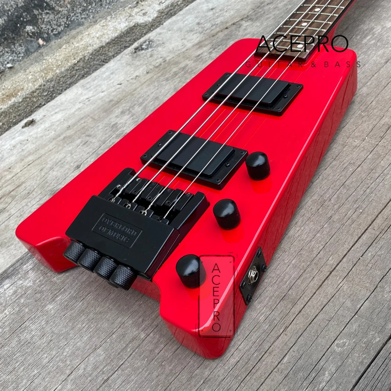 Высокое качество Красный цвет 4 струны Безголовый электрический бас гитара, черное оборудование