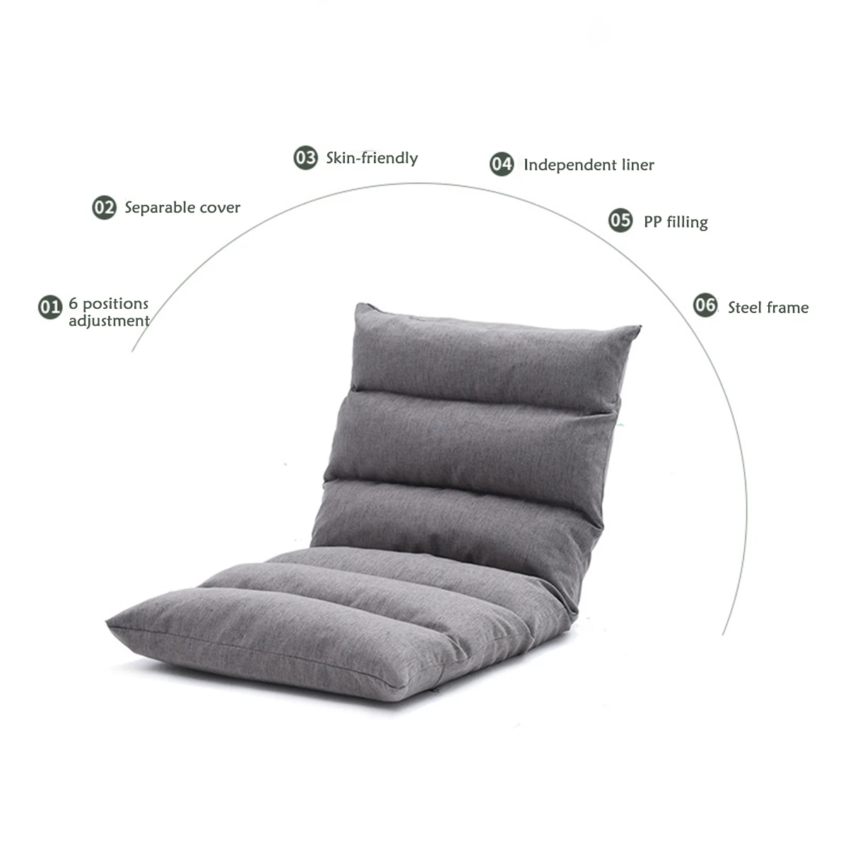 ◆ 6 доступных позиций. Есть 6 доступных позиций для вас, чтобы установить диван стул, так что вы можете наслаждаться вашей активностью в наиболее точной и поддерживающей позиции.
