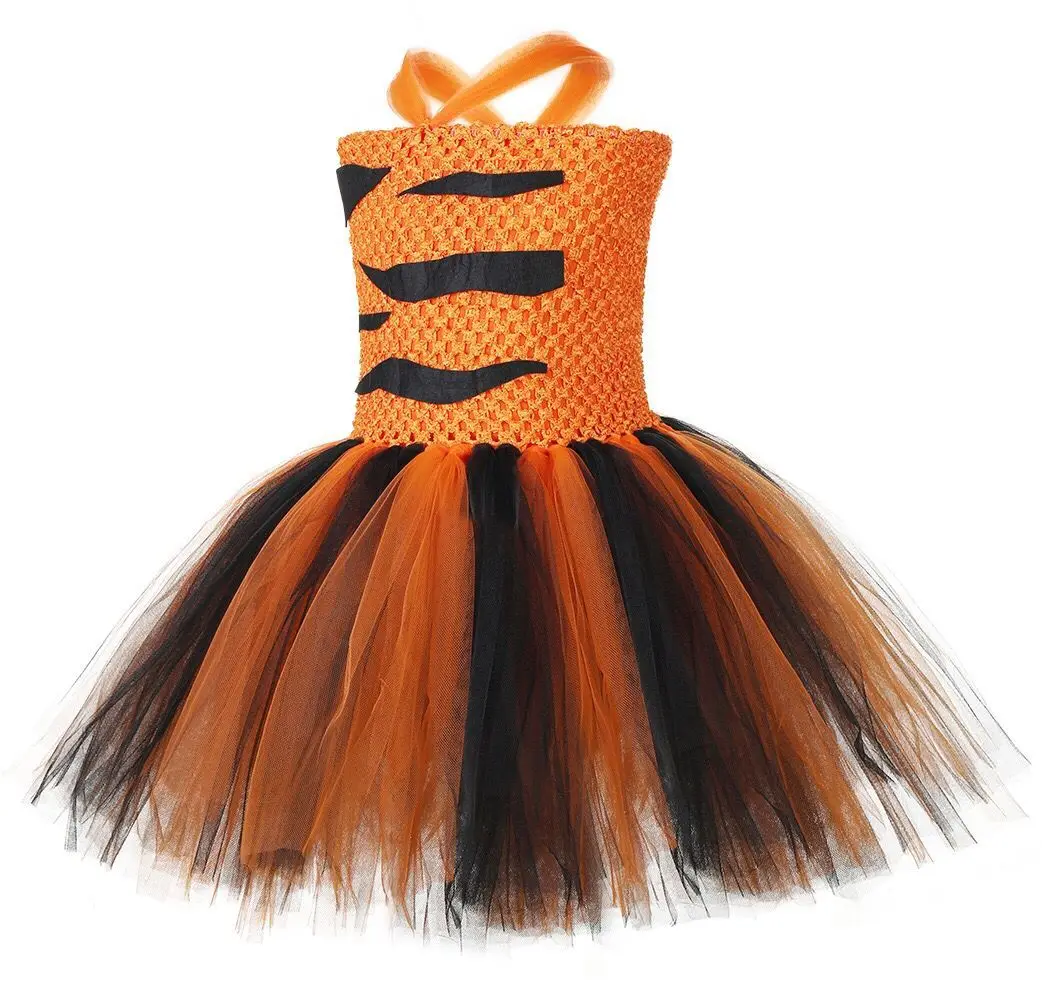 Костюм тигра ручной работы для девочек, эластичная ткань, вязанная крючком, 100% полиэстер и хлопок, полоски, тюль, 100% нейлон, мы используем достаточно тюля, чтобы убедиться, что он очень пушистый, удобный в носке, вы можете купить его с уверенностью.