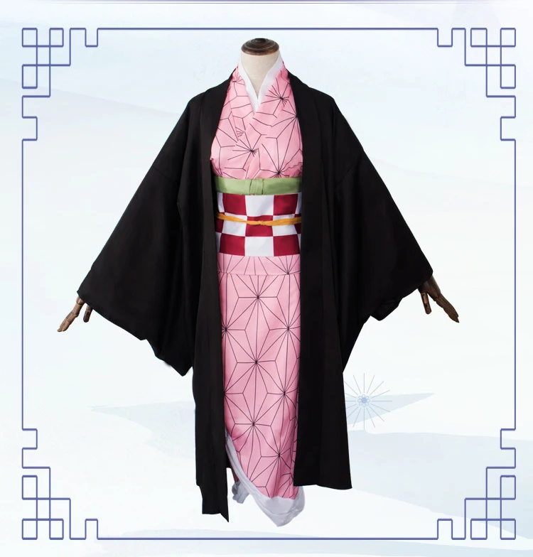 Японский аниме Kamado Nezuko косплей костюм парик демон Slayer Kimetsu no Yaiba кимоно униформа плащ ПОЛНЫЙ КОМПЛЕКТ Хэллоуин градиент волос