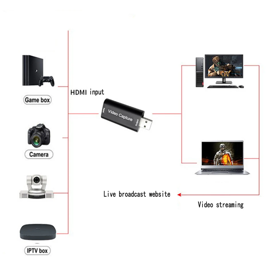 Эта карта захвата USB 2,0 может одновременно записывать видео HDMI и аудио HDMI, а также передавать аудио и видео сигналы на компьютер или смартфон для предварительного просмотра и хранения. Подходит для получения высокой четкости, обучения записи, медицинской визуализации и т. Д. Особенности: Поддержка максимального входного разрешения до 4K; Поддерживает максимальное выходное разрешение до 1080P; Поддержка 8/10/12 бит глубины цвета; При использовании стандартного кабеля AWG26 Расстояние входной передачи составляет до 15 метров (разрешение 1080P и ниже); Поддержка большинства программного обеспечения для приобретения, таких как VLC, OBS, Amcap и т. д.; Поддержка Windows, Android и MacOS; Соответствует спецификациям USB video UVC; Соответствует спецификации USB audio UAC; Внешний источник питания не требуется, поэтому он компактен и прост в переноске. Характеристики продукта: Разрешение HDMI: максимальный вход может поддерживать 3840 × 2160 @ 30 Гц/4K Разрешение видеовыхода: максимальный выход может быть 1920 × 1080 @ 30 Гц Видео Вход Формат: 8 / 10 / 12-bit глубокий Цвет Режим видеовыхода: YUV / JPEG Поддержка аудио формата: L-PCM Поддержка стандартного кабеля AWG26 HDMI: вход ≤ 15 метров, стандартный кабель AWG26 HDMI. Максимальный рабочий ток: 0.4A / 5VDC Диапазон рабочих температур: (от-10 до + 55 ℃) Размер (Д x Ш x В): 64x28x13 (мм) Вес: 21,4 г В комплект входит: 1 * HDMI карта захвата 1 * Руководство пользователя Без розничной коробки