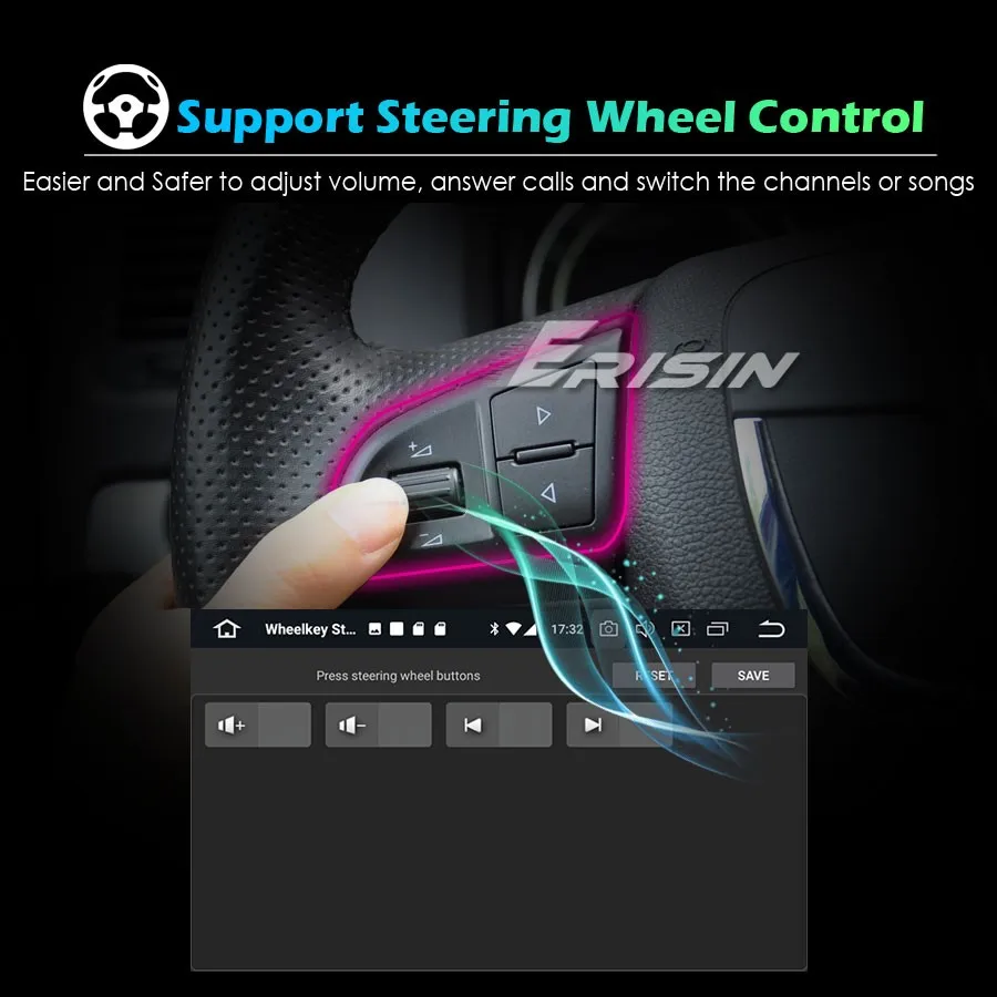-Поддержка управления рулевым колесом, легче и безопаснее регулировать громкость, отвечать на звонки и переключать песни во время вождения.