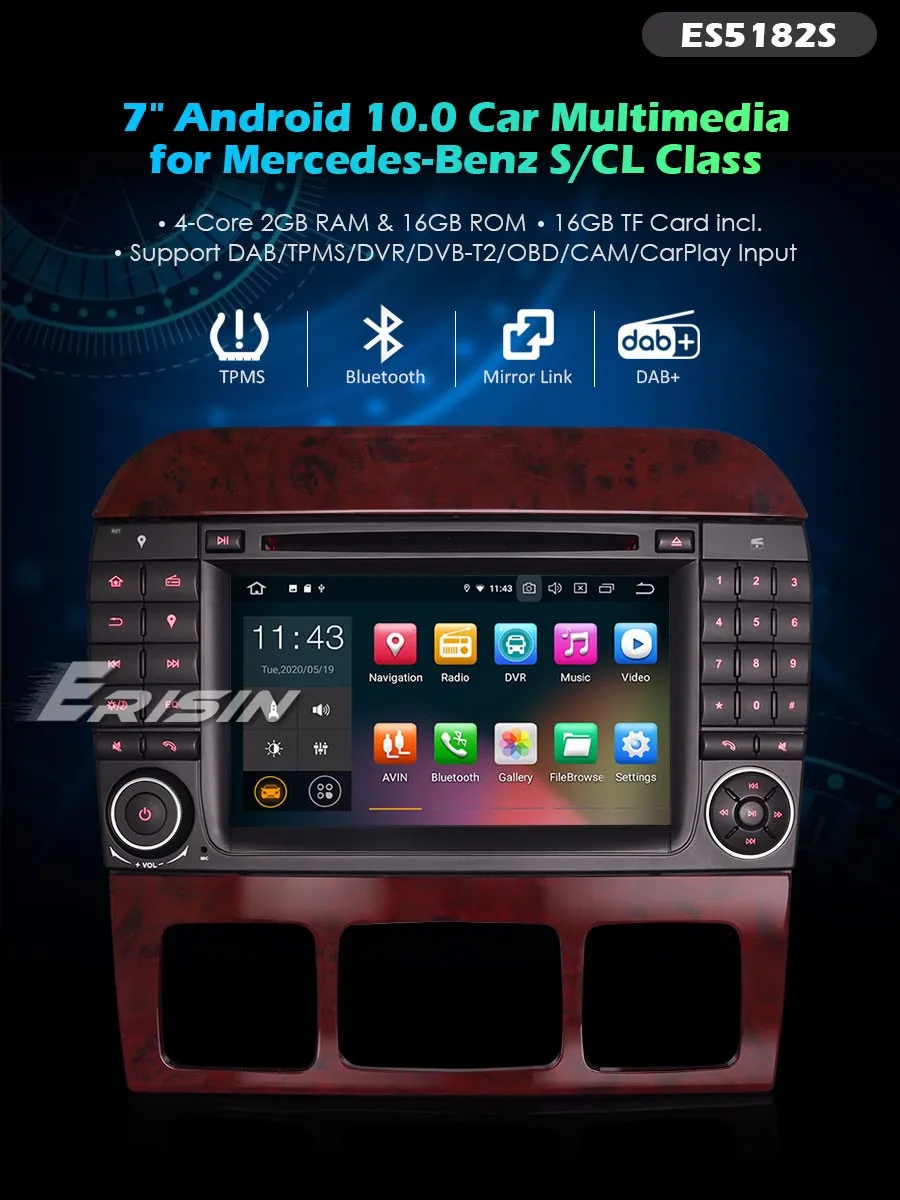 ES5182S 7 "четырехъядерный Android 10,0 автомобильный мультимедиа с GPS радио WiFi BT TPMS/DVR/DTV/DAB-IN...