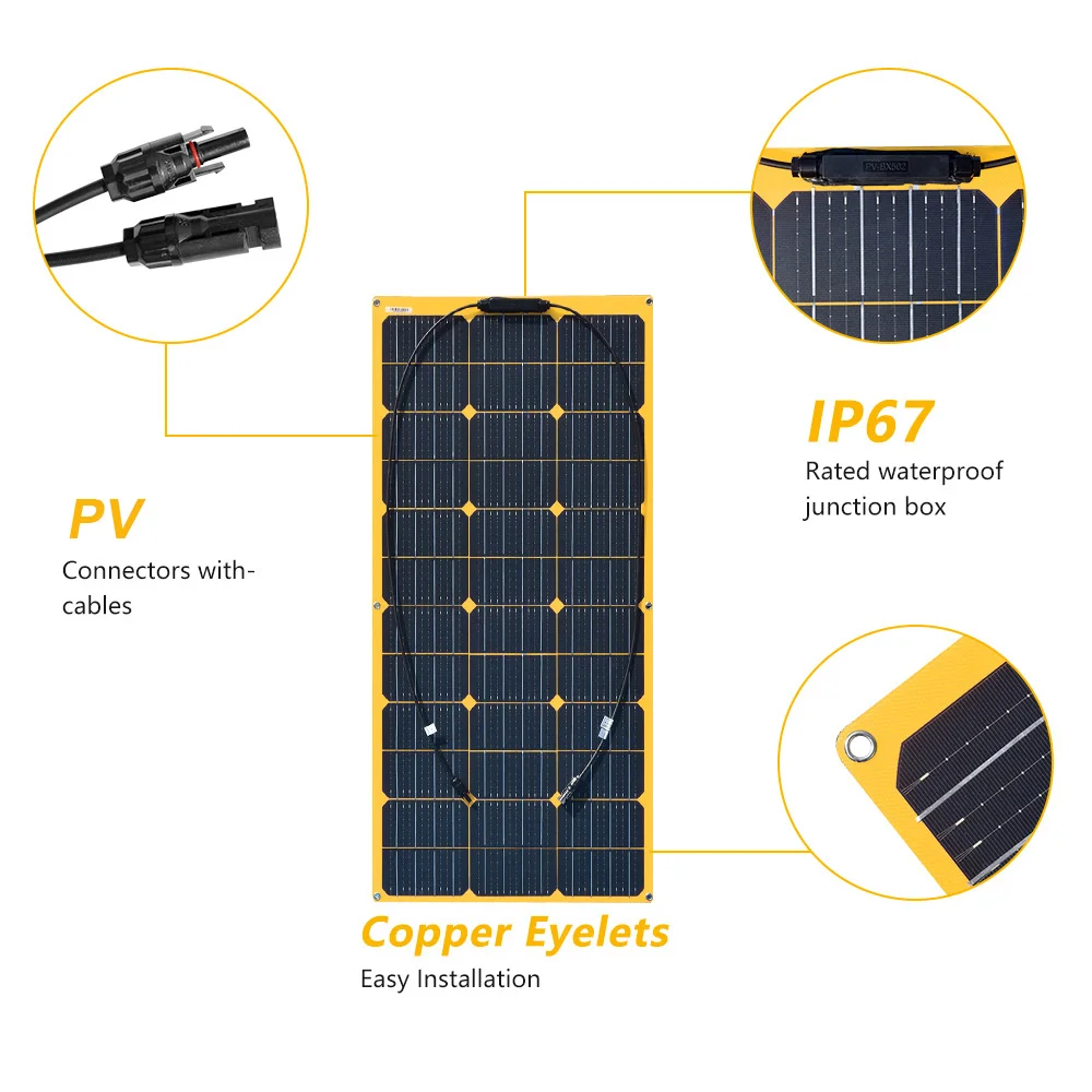 Желтая 100 Вт Гибкая солнечная панель