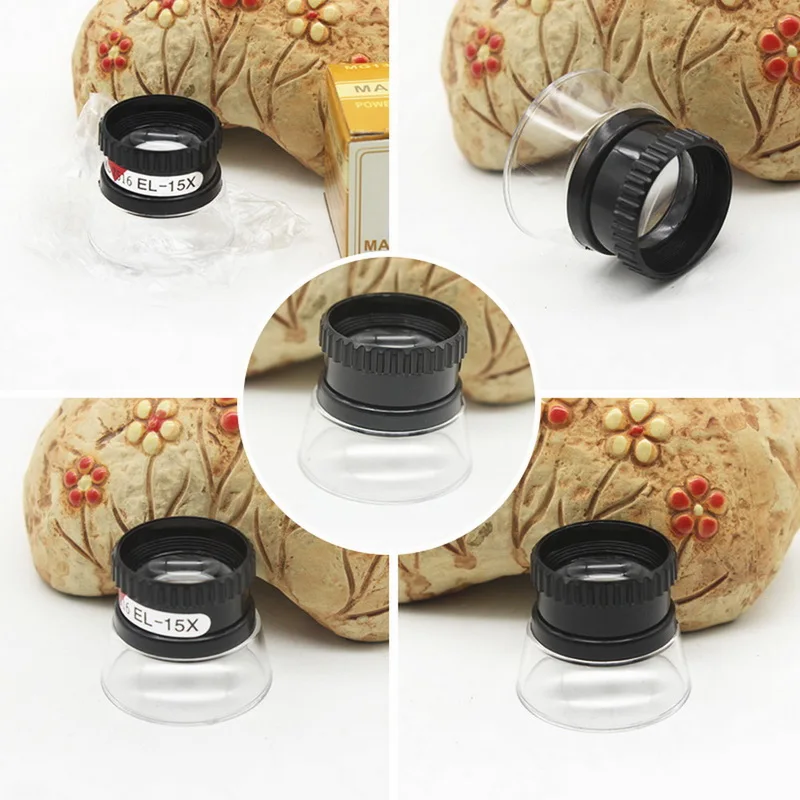 <15 Увеличение: 15 X увеличение обеспечивает высокую четкость для наблюдения за маленькими текстами, частями и деталями.
