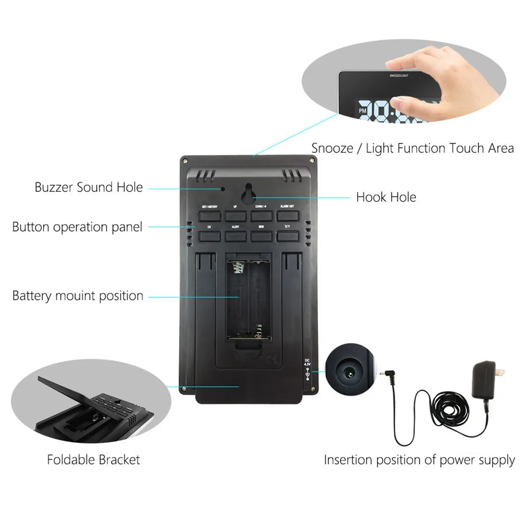 Многофункциональная погодная станция ll-in-One: беспроводная погодная станция JJTGS показывает информацию о комнатной наружной температуре (по Фаренгейту или Цельсию) и влажности с ежедневными самыми высокими/самыми низкими записями, Барометрическое давление истории, двойным сигналом показывающие внутреннюю/часы, фаза Луны, в свою очередь стрелка времени (12/24 ч), дата, день недели, функция повтора сигнала, американский часовыми поясами, так и во время температуры оповещения. Прогноз погоды с использованием пяти значков: солнечный, светильник с облачным покрытием, облачный, дождливый и зимний. Легкий для чтения цветной светодиодный дисплей: с большим цветным светодиодный-экраном, JJTGS Крытый Открытый термометр с 8 сенсорными кнопками обеспечивает плавную работу. Мощность требования: Дисплей: 4,5 в адаптер переменного тока для Начальная школа Мощность;Примечание: Перед использованием ознакомьтесь с руководством пользователя по технической спецификации.