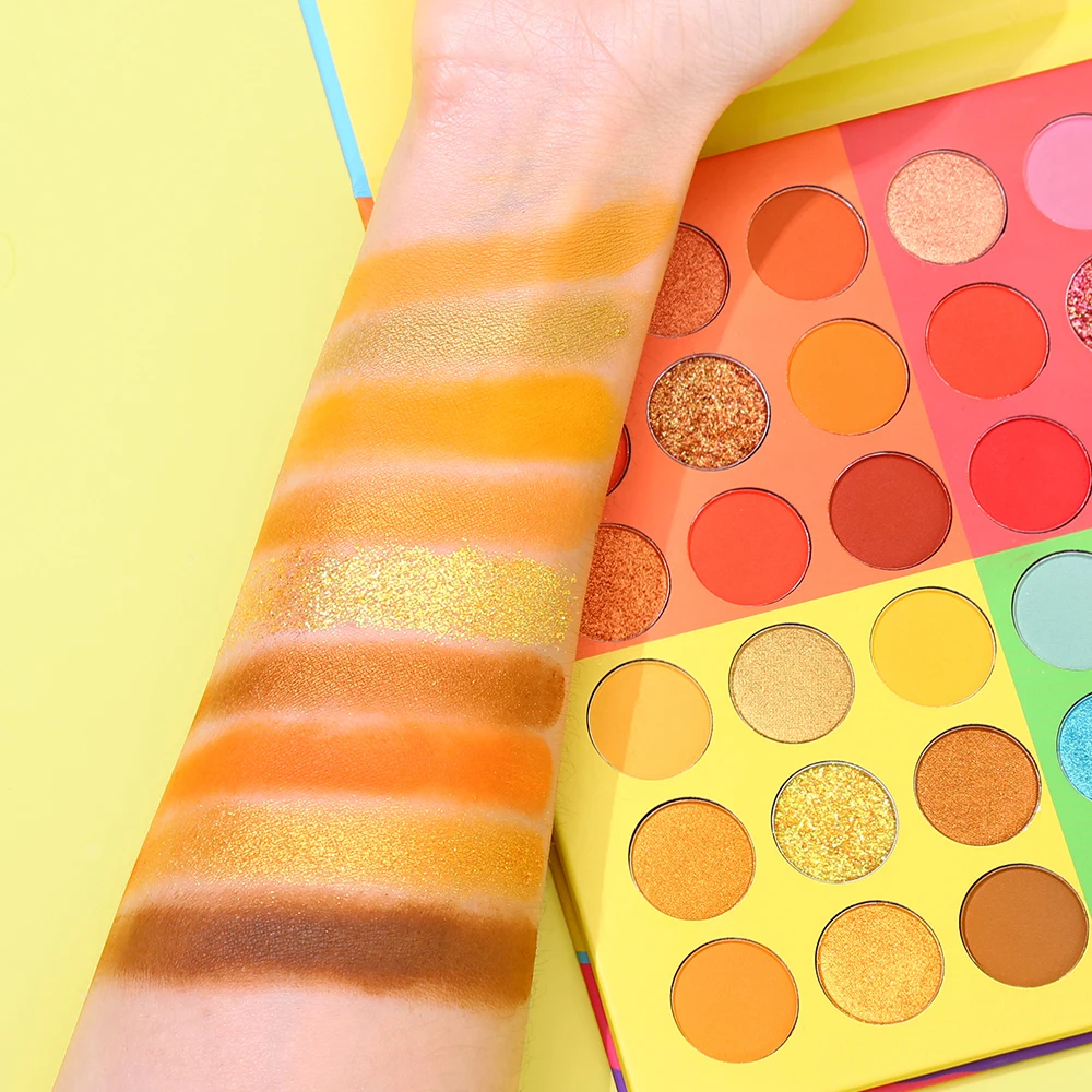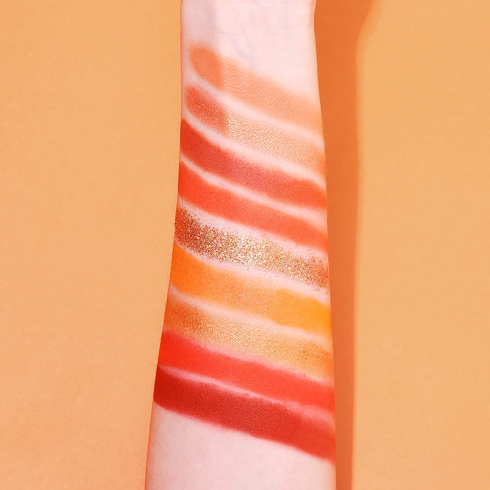 54-минеральный краситель, тени для век, палитра, состоит из 6 областей: оранжевый, красный, фиолетовый, желтый, зеленый и синий цвет.