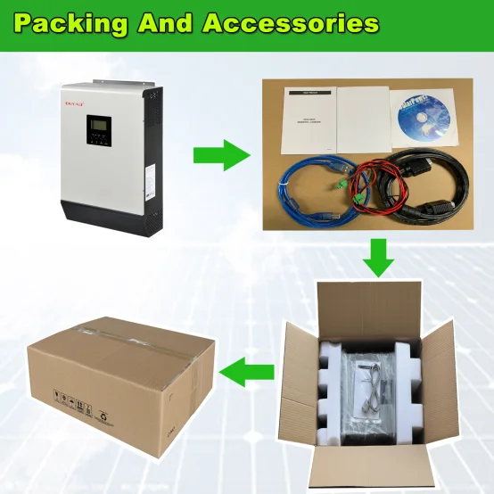 1.Высокая эффективность Чистая синусоида Инвертор (PF = 1);Широкий диапазон входного сигнала PV (120Vdc - 450Vdc)80A со слежением за максимальной точкой мощности, ГТК; Интеллигентая (ый) с 3-я ступенями 80A Сетевое зарядное устройство переменного тока.