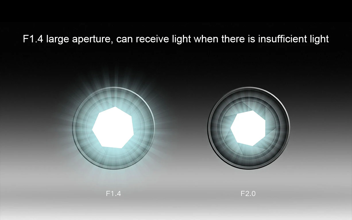 F1.4 Большая диафрагма, может получить светильник, когда недостаточный светильник