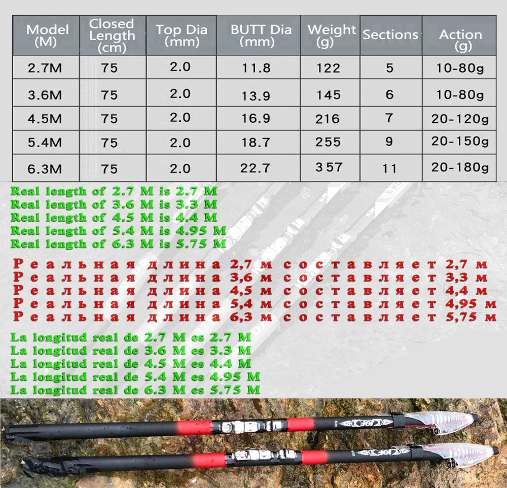 Рыболовная удочка из углеродного волокна 2,7 м/3,6 м/4,5 м/5,4 м/6,3 м