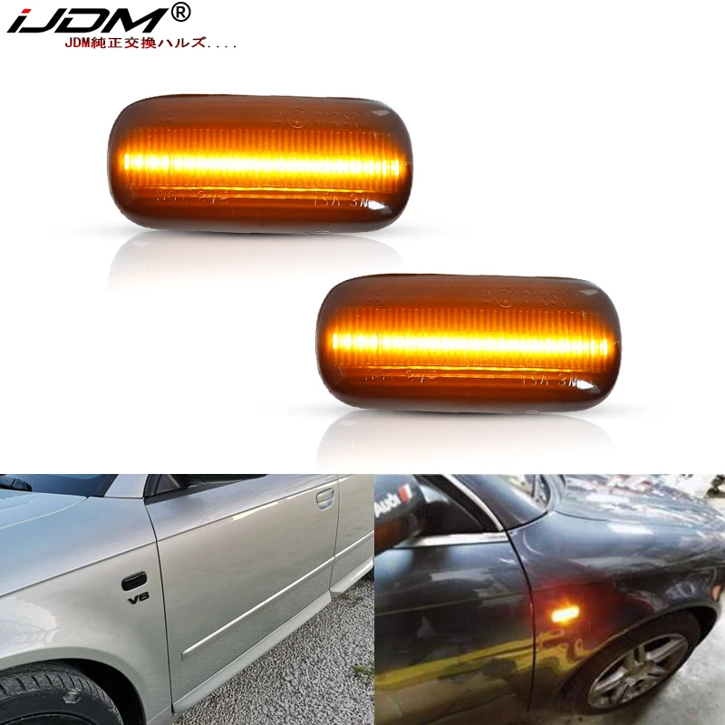 Подходит для Audi 2002-2011 A6 S6 Allroad, 2002-2009 A4, 2004-2009 S4 RS4, 2006-2008 A3 S3 Включает в себя одну пару (со стороны водителя и пассажира) черные/темно-дымчатые линзы янтарные светодиодные лампы боковые габаритные огни, CAN-bus Ошибка бесплатно Каждая штука питается от 21 высокомощного янтарного SMD светодиодного диода с супер ярким выходом освещения Подарите своей поездки современный внешний вид с повышенной безопасности и видимостью в ночное время!