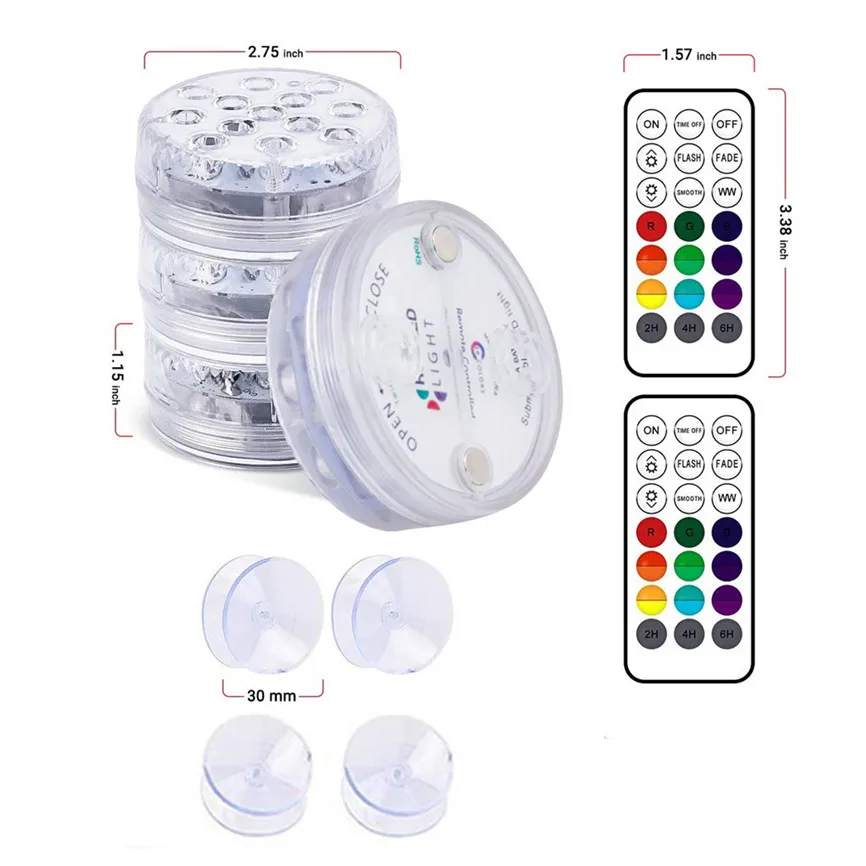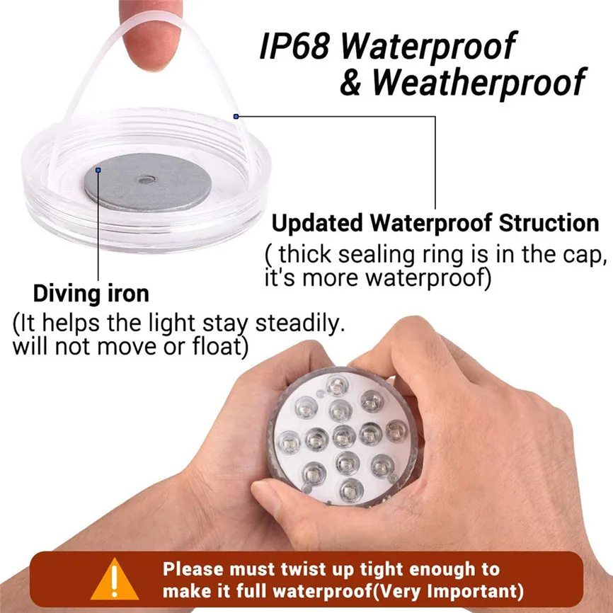 [Светодиодный новейший погружной светильник s с большими присосками]: IP68 Водонепроницаемый погружной светильник s с большими сильными присосками (30 мм) и модернизированной полностью водонепроницаемой структурой, он хорошо работает как во влажных, так и в сухих местах, таких как светильник для бассейна, светильник для пруда, ванна, гидромассажная Ванна, лодка, основа, аквариум, ваза, цветочный горшок, Водопад, и прихожая, подвал, гараж, состояние, свадьба, событие, вечерние, как Декор Светильник, атмосферный светильник, или ночной Светильник для внутреннего и наружного декора.