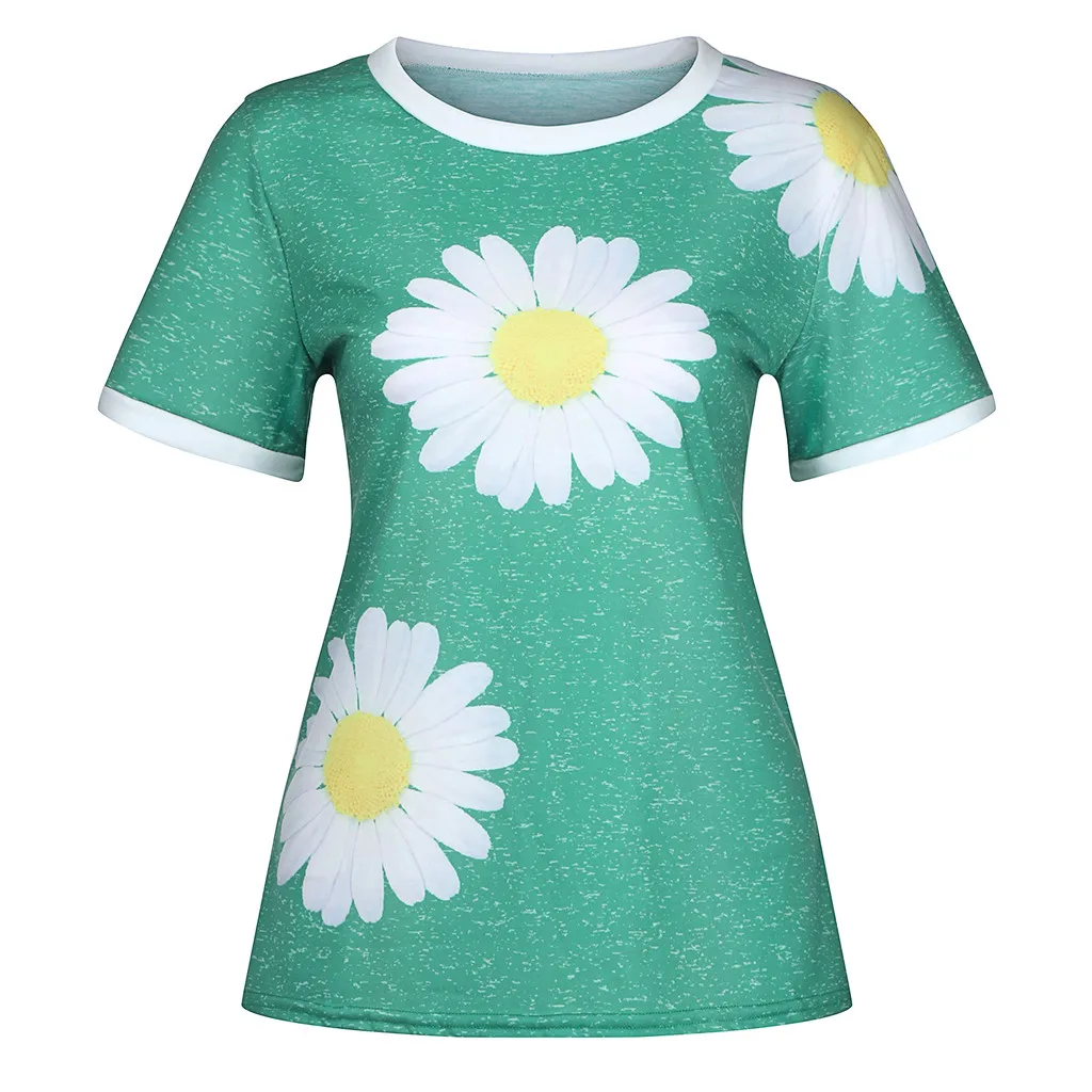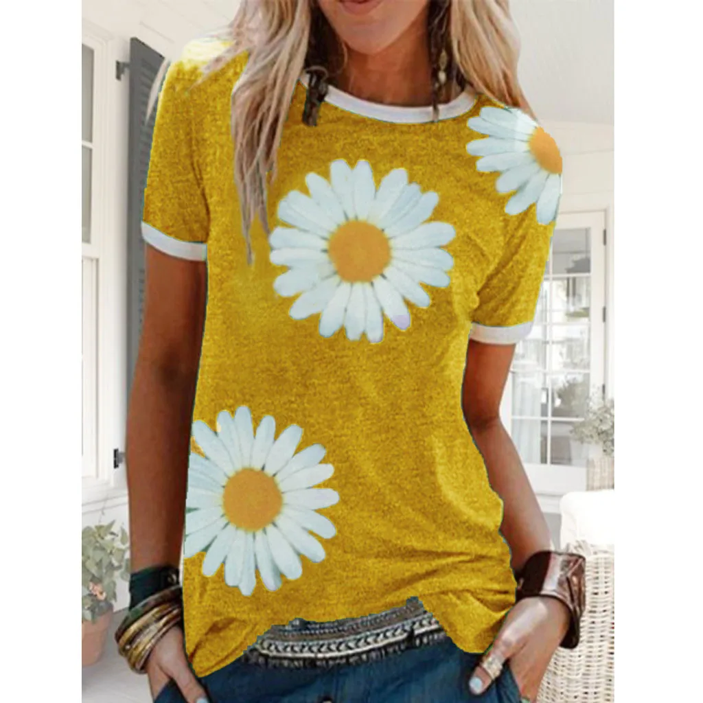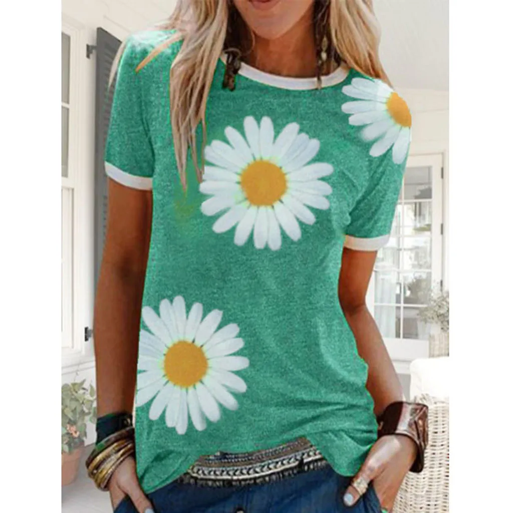 Женская Повседневная Лоскутная футболка с короткими рукавами и круглым вырезом с принтом «маленькая Маргаритка»