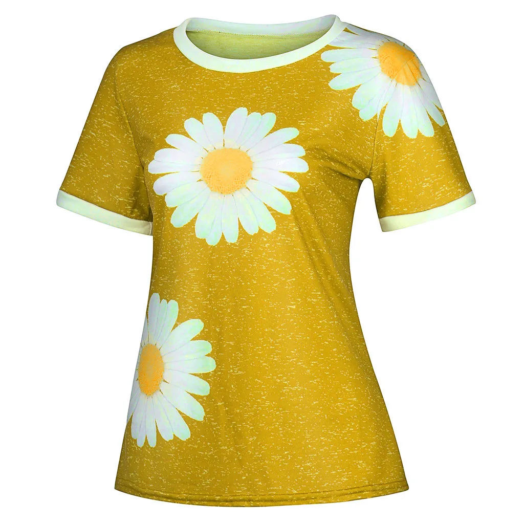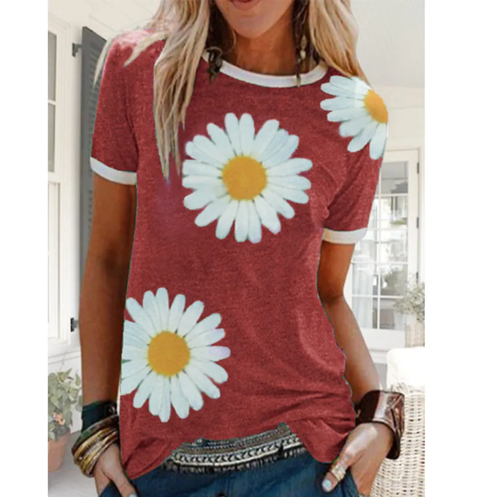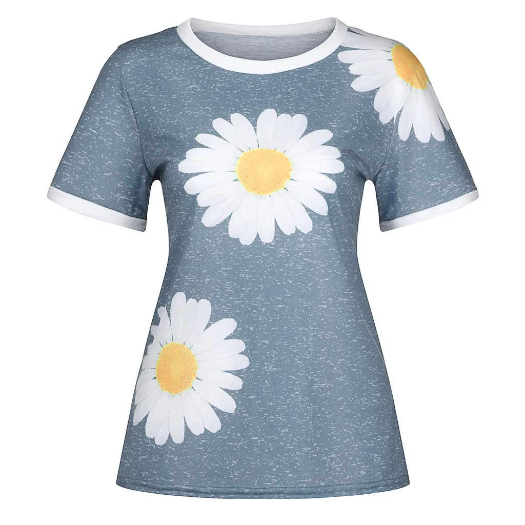 Женская Повседневная Лоскутная футболка с короткими рукавами и круглым вырезом с принтом «маленькая Маргаритка»