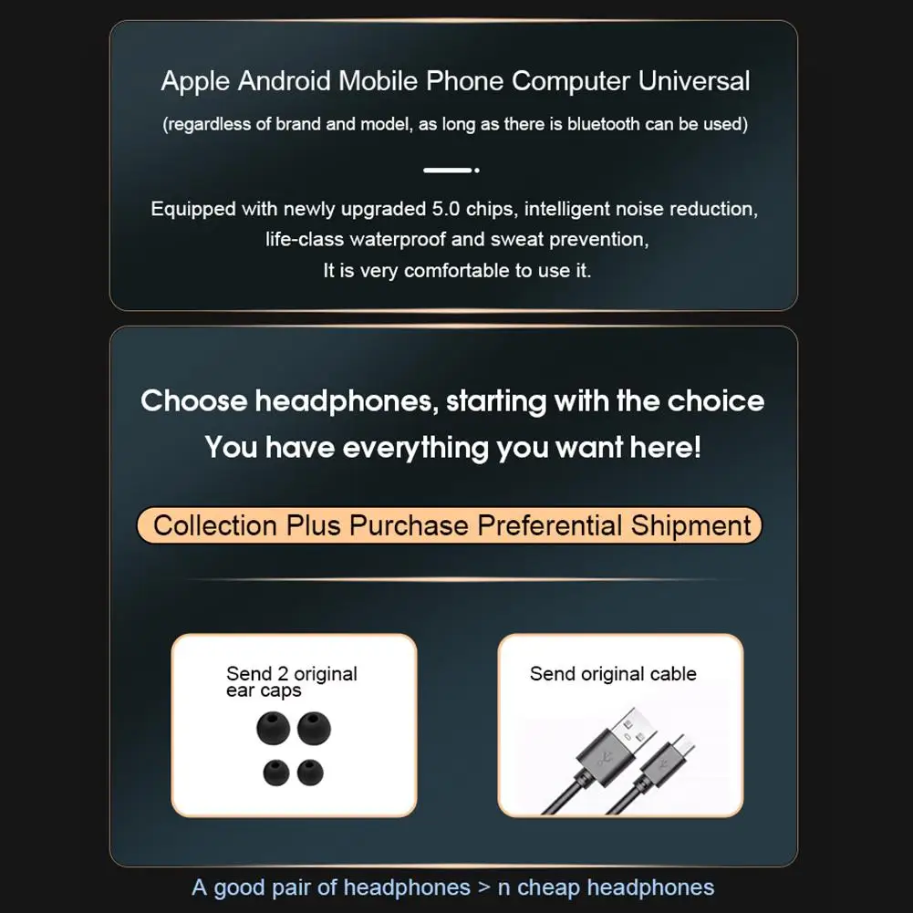 1. Функции гарнитуры 9D объемное звучание, 5,0 бинауральные чип, который является true wireless Bluetooth гарнитуры.1 x коробка