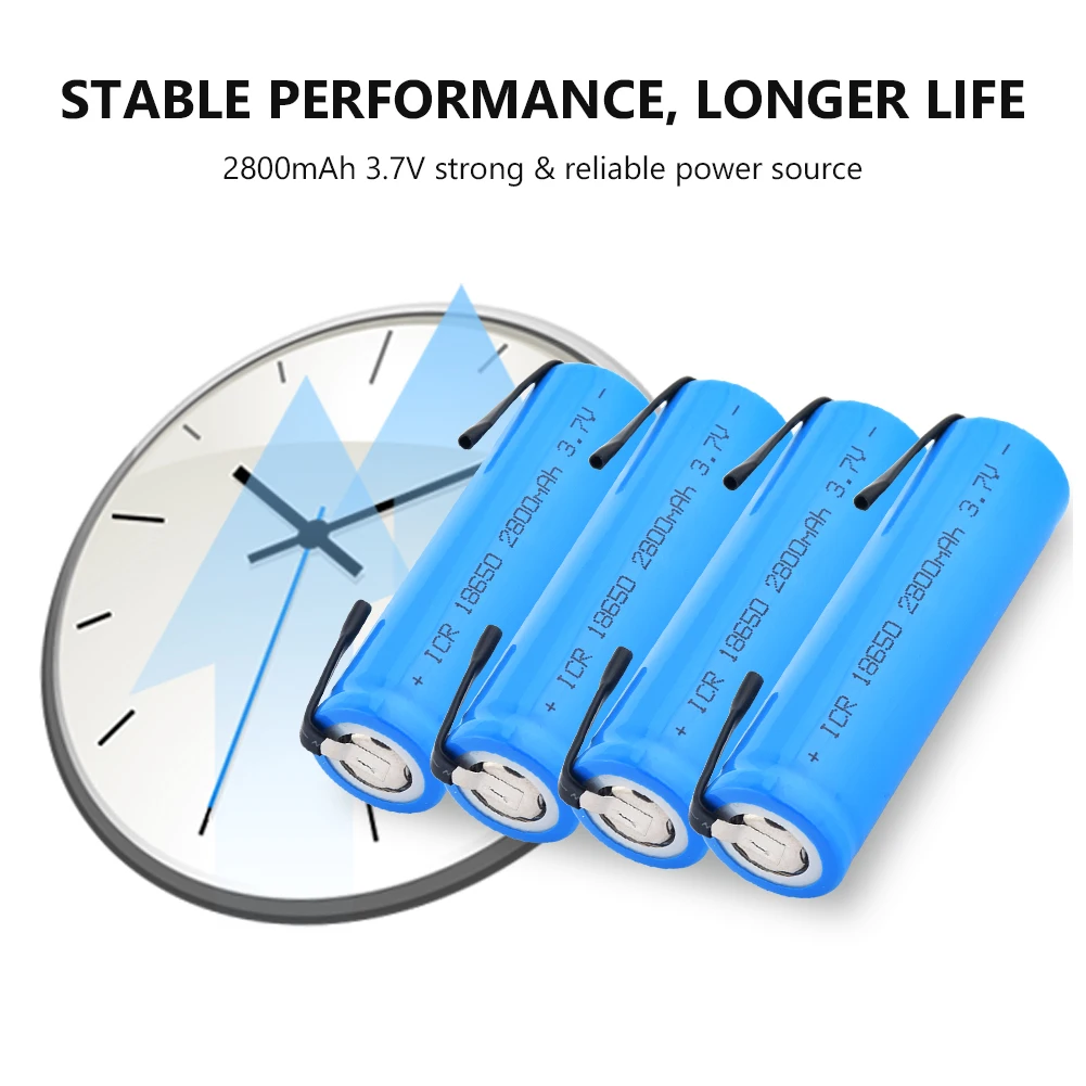 Перезаряжаемые18650 литиевыйАккумулятор с двумя вкладками из никеля для самостоятельной пайки, стабильная скорость разряда, Отсутствие эффекта памяти.