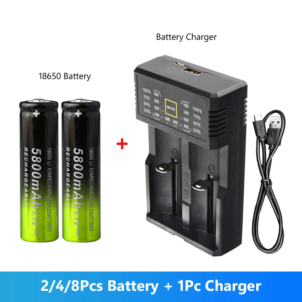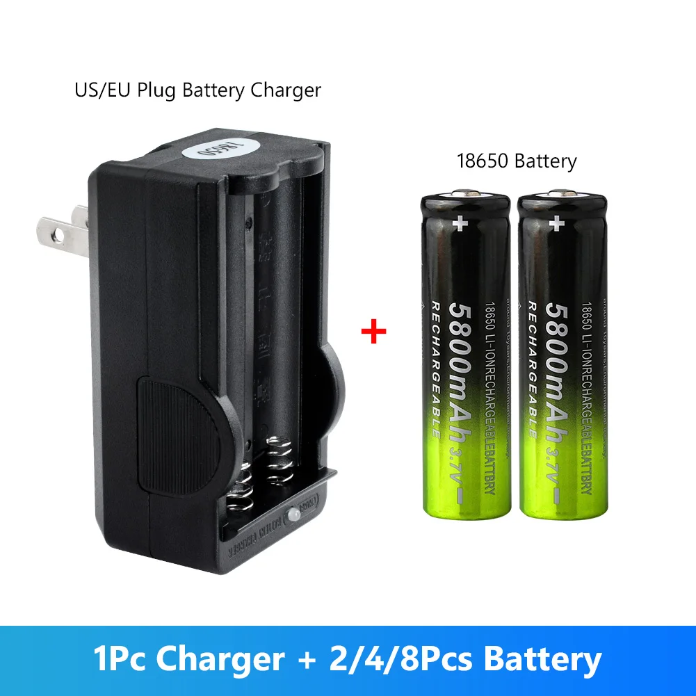 2 шт. 18650 батарея 5800mAh 3,7 V литий-ионная аккумуляторная батарея высокой мощности для фонарика с ЕС/США литий-ионный аккумулятор зарядное устройство
