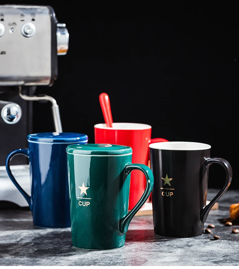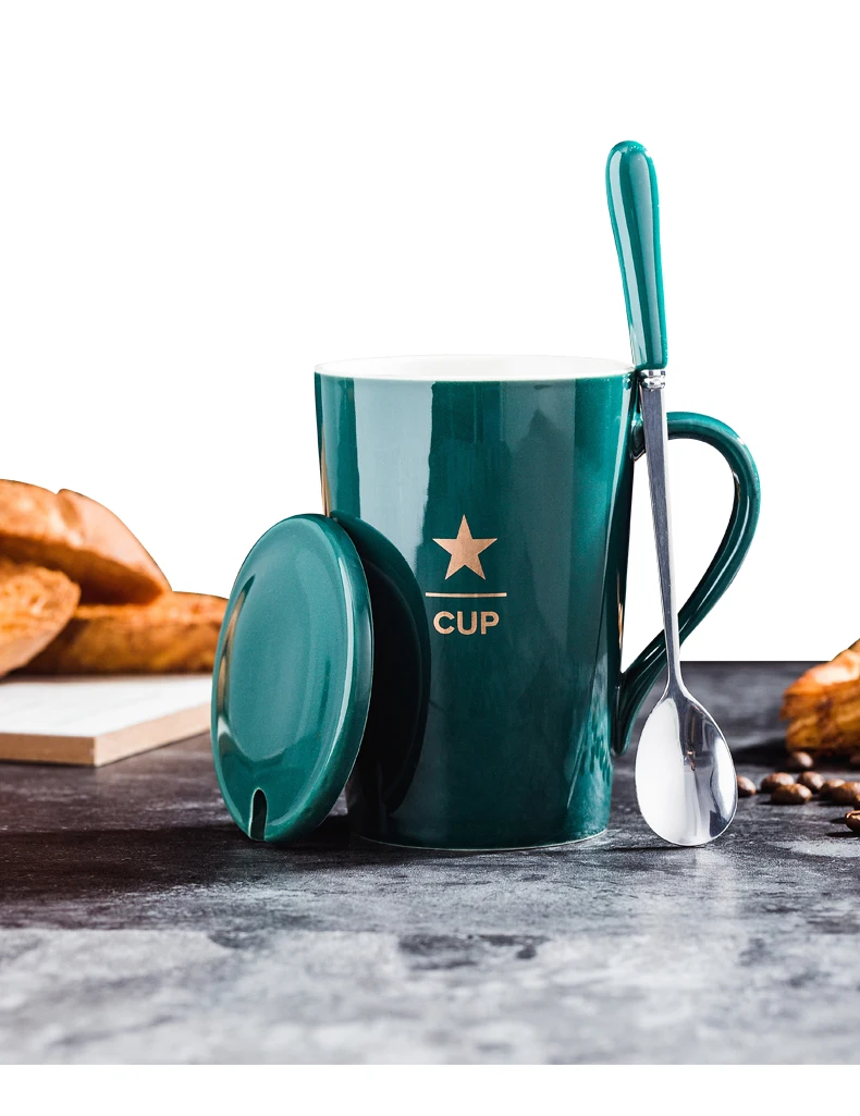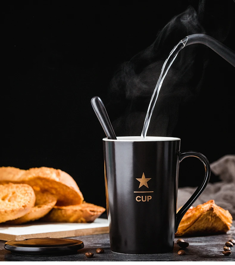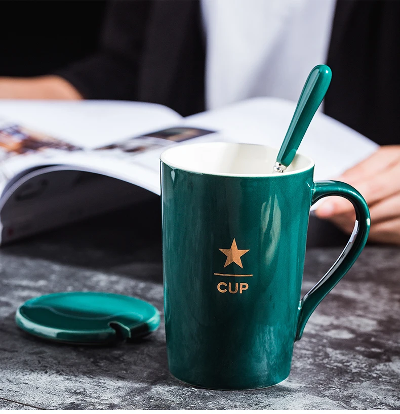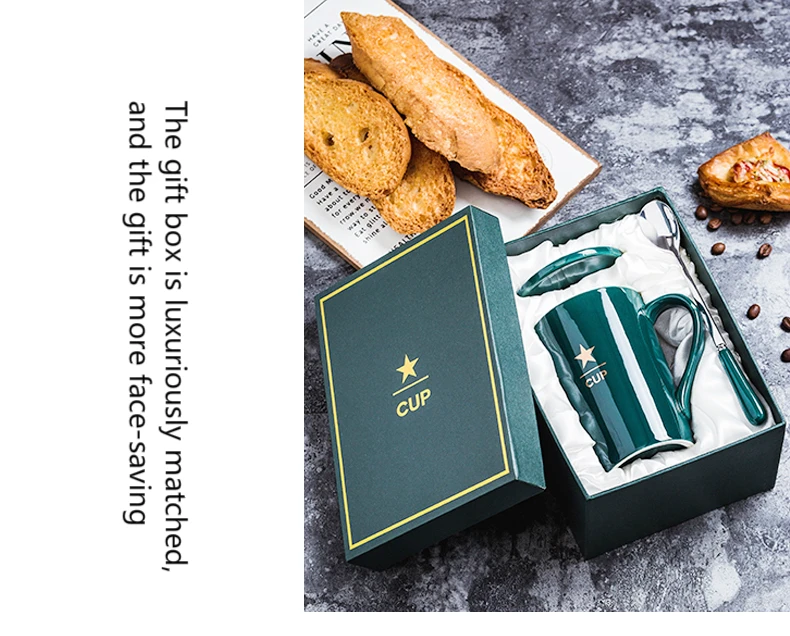 400 мл креативная керамическая кружка кофейная чашка молочная чашка скандинавские Ins чашка для воды с крышкой Ложка кофейные кружки Изысканная Подарочная коробка чайная кружка