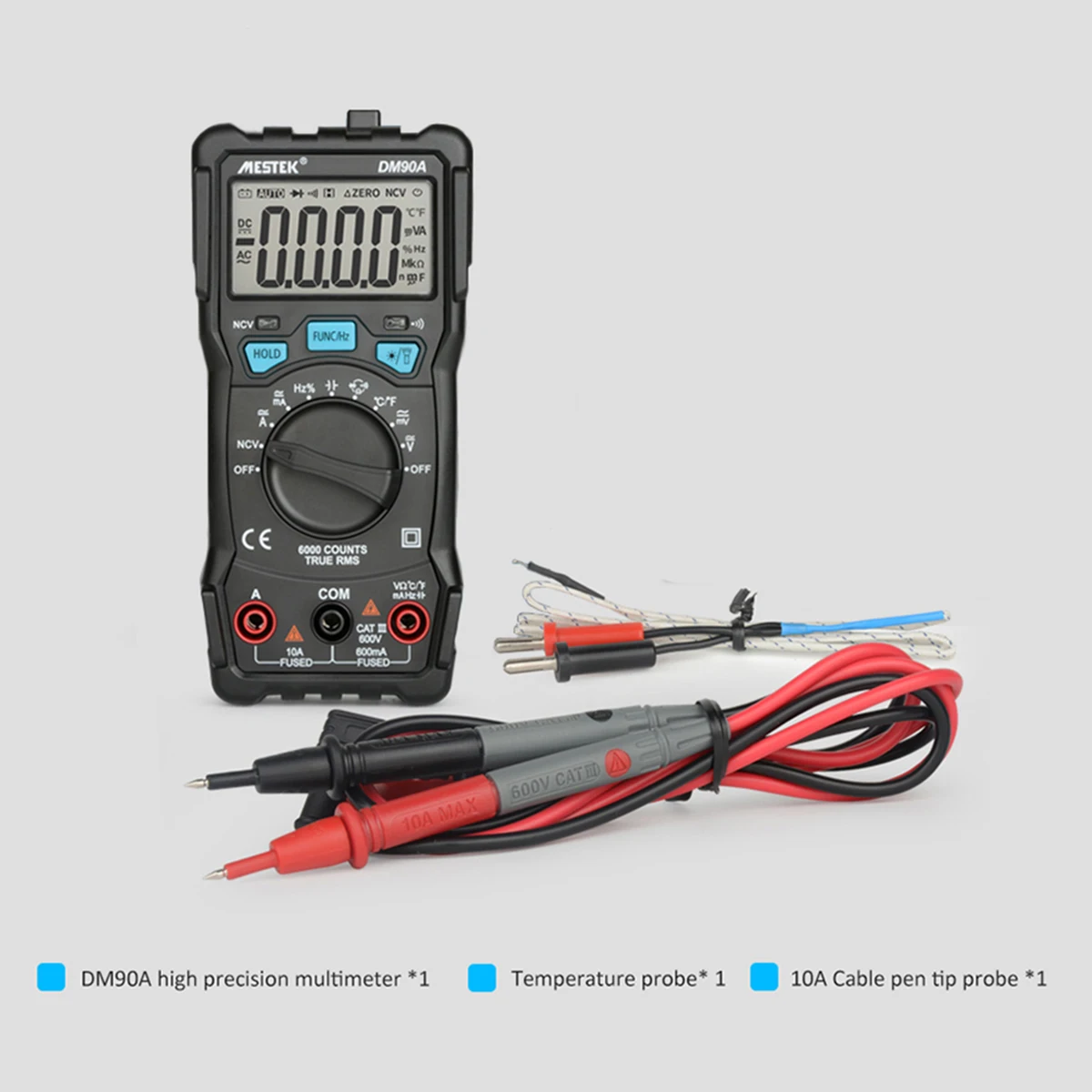 Профессиональный цифровой мультиметр для измерения напряжения постоянного/переменного тока, постоянного/переменного тока, сопротивления, емкости, частоты, температуры, диодов и непрерывности, очень подходит для тестирования и обслуживания электрического оборудования в лаборатории, фабрики и т. Д.