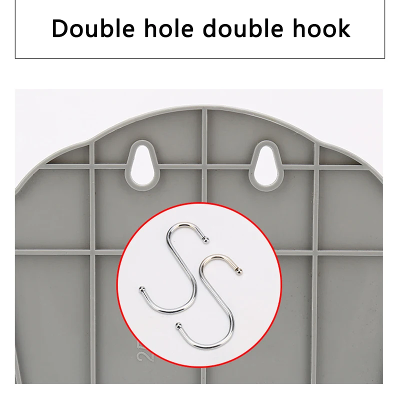 3. Двойная конструкция крючка с двойным отверстием, сильная стабильность, не легко встряхнуть, можно повесить на балкон, в помещении, экономя пространство.