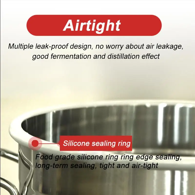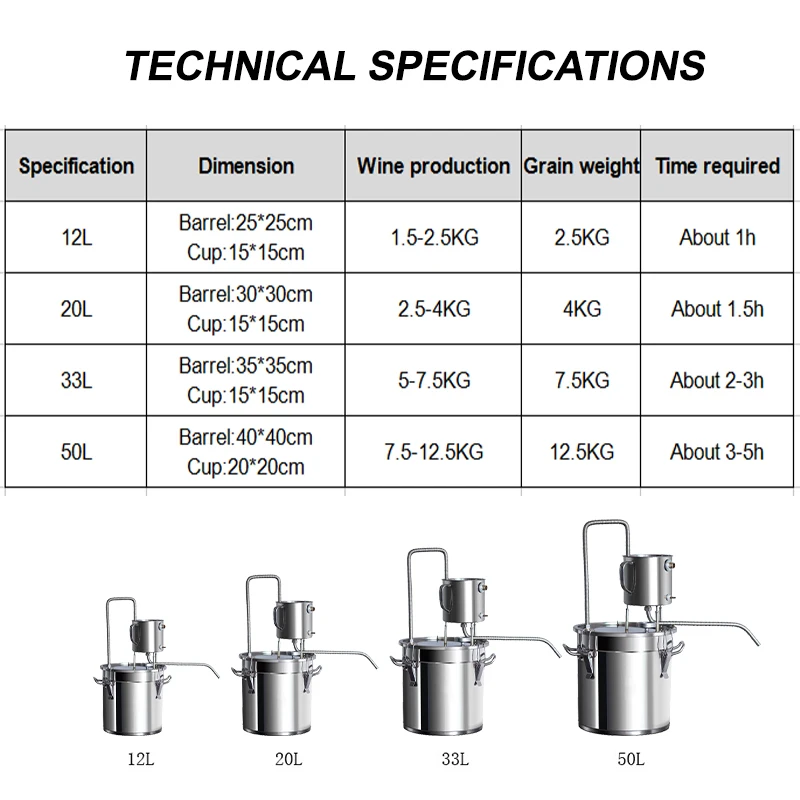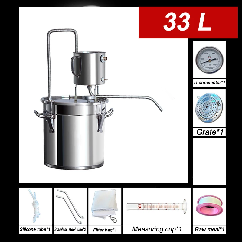 -Этот набор домашнего дистиллятора представляет собой полный набор для приготовления вина. Он очень прост в настройке и использовании, особенно подходит для производства духов с сильным ароматом (бренди, виски, фруктового бренди, Ecc.), также для эфирных масел (отдушек, средств и ликеров) но особенно для высокосортного спирта (водки). Он также может сделать чистую воду.
