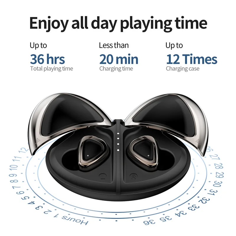 Описание товара Очень удобное ношение ушей Милый дизайн, лакированная продукция Высокое качество, роскошные подарки для VIP или женщин Качество звука *. Высокие частоты-очень четкие трио и глубокие басы. *. Альт-вокал, гитары и другие звуки очень четкие и качество звука отличное. *. Бас-чистый и без шума, удобный и гладкий. Описание 1) чип Bluetooth: 5,0 Airoha 2) Выберите автоматическое быстрое сопряжение, можно автоматически подключить память. 3) имеет зарядный чехол 400 мАч. 4) Материал военного назначения, долговечное использование. 5) долгое время воспроизведения и быстрая зарядка. 6) супер бас, беспроводной настоящий стереозвук. 7) Эксклюзивный запатентованный, оригинальный производитель. 8) 360 HD качество объемного звука, умное шумоподавление; 9) Эргономичный дизайн, очень удобно носить. 10) благородные и роскошные подарки для VIP или влюбленных. 11) Совместимость с IOS и Android. 12) ключ к сопряжению загрузки, может автоматически подключаться к памяти. Посылка Наушники * 1 шт. Кабель * 1 шт. Ушная крышка * 2 пары Инструкция * 1 шт. Подарочная коробка * 1 шт.