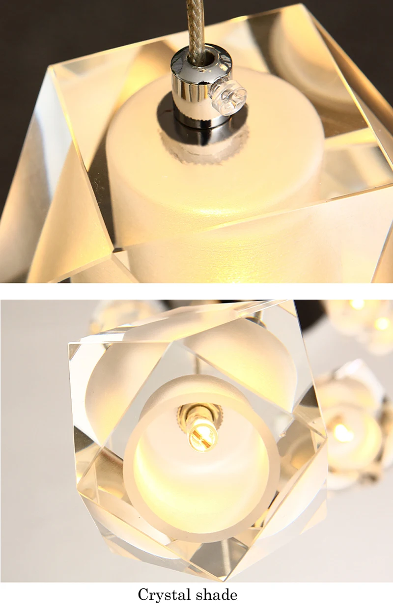 Материал: хромированная основа + Кристалл K9 (размер тени: каждая сторона 8 см) Размер: Одиночный светильник диаметром 10 см * h100 см 6 ламп диаметром 30 см * 150 см (Требуемая длина, регулируемая высота) 9 ламп диаметром 40 см * 180 см (Требуемая длина, регулируемая высота) 12 ламп диаметром 40 см * 210 см (Требуемая длина, регулируемая высота) 16 ламп диаметром 50 см * 250 см (Требуемая длина, регулируемая высота) 18 огней диаметром 50 см * 280 см (Требуемая длина, регулируемая по высоте) 25 ламп диаметром 60 см * 350 см (Требуемая длина, регулируемая высота) Диаметр 29 огней 60 см * 420 см (Требуемая длина, регулируемая высота) Можно настроить различные стили и высоту, приветствуем запрос (Длина шнура регулируется или может запросить более длинную) на заказ могут быть другие размеры Лампы: 3 Вт для каждой лампы, светодиодные лампы, светодиоды высокой мощности, подходит для 110-240 В