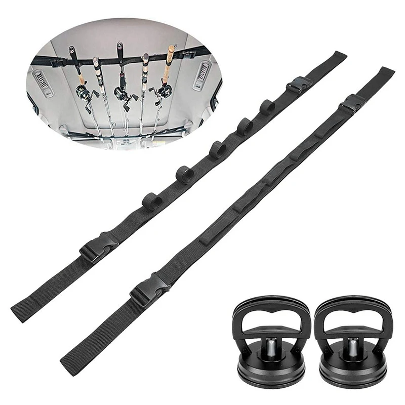 Две Стойки Для Удочек, две вакуумные присоски, передний ремешок и задний ремешок. Затяните стержень с пряжкой. Ремешки с пряжкой достаточно длинные, чтобы даже большая удочка для лодки в океане была достаточно маленькой для форели. Надежно Защитите удочки внутри транспортного средства.