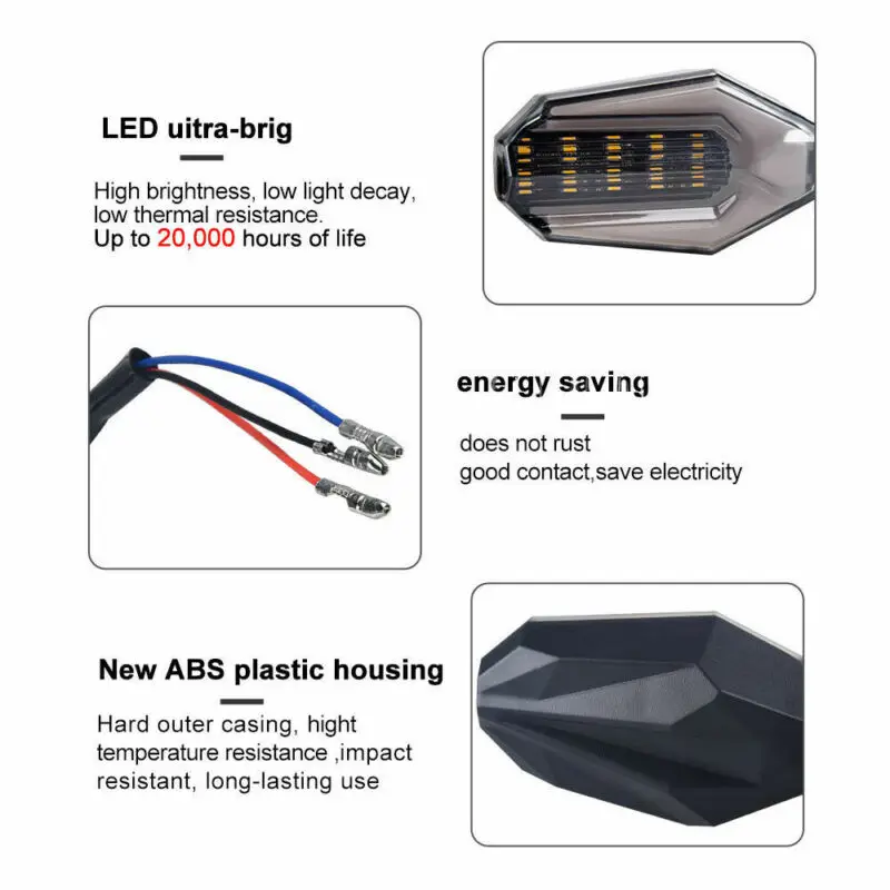 Подключение: 3 провода с прямым болтом connnetor (черный цвет: отрицательный, синий цвет: светильник для вождения, Красный Цвет: янтарный светильник)