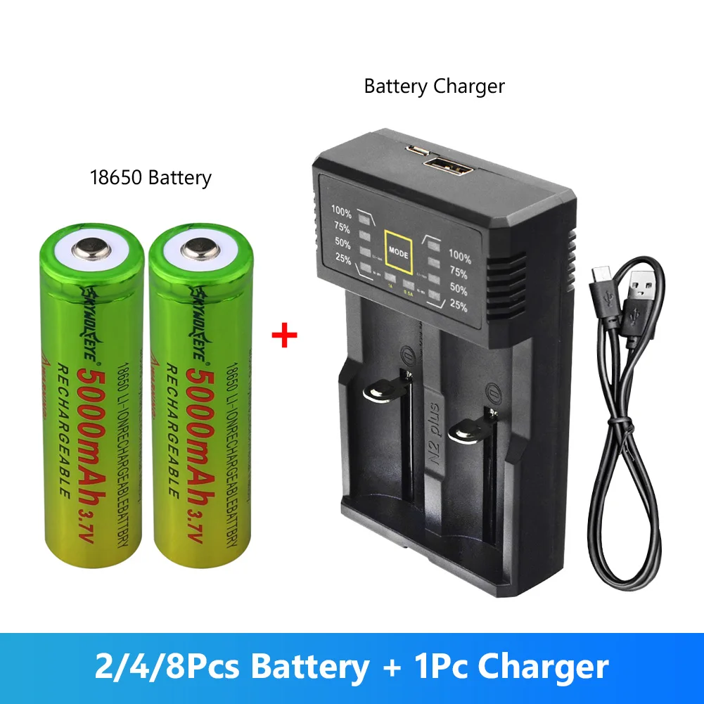 8 шт. Новый 3,7 V 5000 мА/ч, литий-ионный 18650 аккумуляторная батарея с зарядным устройством для фонарик игрушки факел ноутбука power bank
