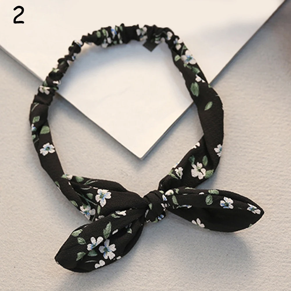 Повязка на голову в стиле ретро с кроличьими ушками, повязка с принтом и бантом, повязка на голову