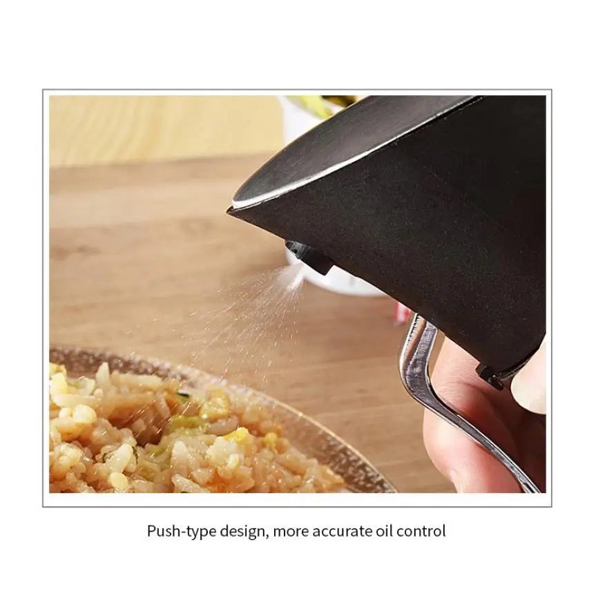 1. Translucent food grade PC bottle body, the oil volume is clearly visible 2. The base of the bottle is made of TPR anti-skid base, which is not easy to fall over 3. Double nozzle design, separate cup body, stylish and beautiful, durable 4. There is a very small hole at the nozzle, after the vinegar is sprayed, it is not droplet-like but misty, and the dosage is easier to control 5. The small-hole spray head can spray the oil evenly and evenly when spraying the oil. The oil can be sprayed directly on the food, and the oil can be evenly distributed to save oil.