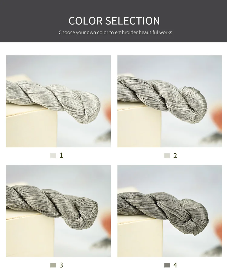 400 м чистый цвет вышивки Нитки/поделки, ручная вышивка/аксессуары ручной работы/серия leaden серый Особенности: 1.100% шелк и высокое качество, подходит для Сучжоу ручной вышивки. 2. Длина: 400 метров (20 метров/маленький кусок) 3. У вас есть восемь цветов на выбор 4. Пожалуйста, обратите внимание, что в зависимости от дисплея, продукт может производить некоторые различия в цвете, пожалуйста, знать и понять эту ситуацию. Упаковка: 1 шт. (включая 20 маленьких штук)