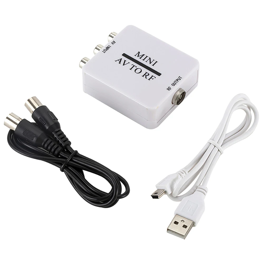 -Мини HD видео конвертер коробка RCA AV CVSB к RF видео адаптер конвертер поддерживает RF 67,25 MHz 61,25 MHz AV к RF zoom TV switcher.