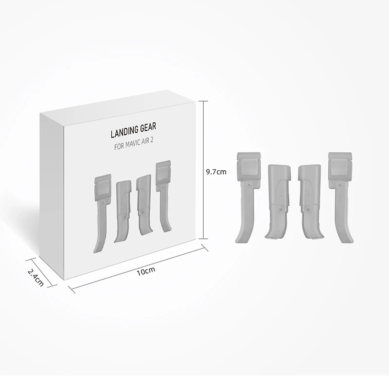 Материал: пластик Применимые модели: для Mavic Air 2 Цвет: серый Вес нетто: 18,3 г Вес посылка: около 40 г Размер изделия: 6*2,2*1,5 см (задний штатив), 5*1,6*1,6 см (передняя штатив) Посылка Размеры: 10*9,7*2,2 см